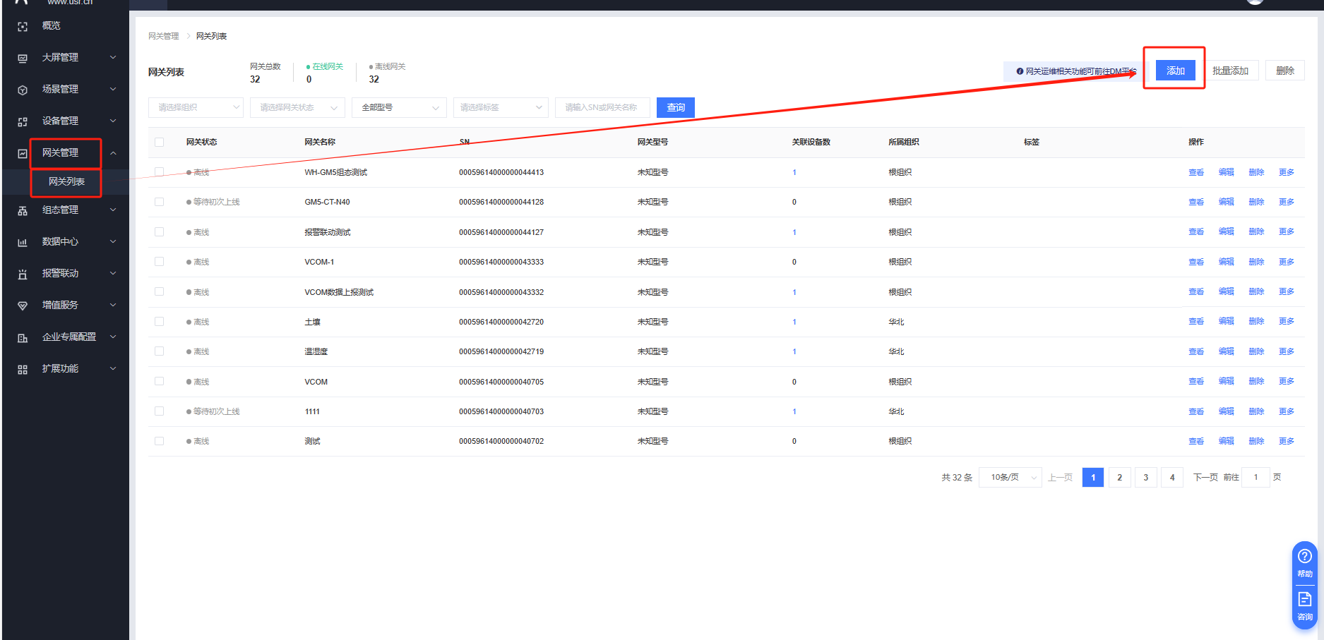 網(wǎng)關(guān)管理---網(wǎng)關(guān)列表---添加