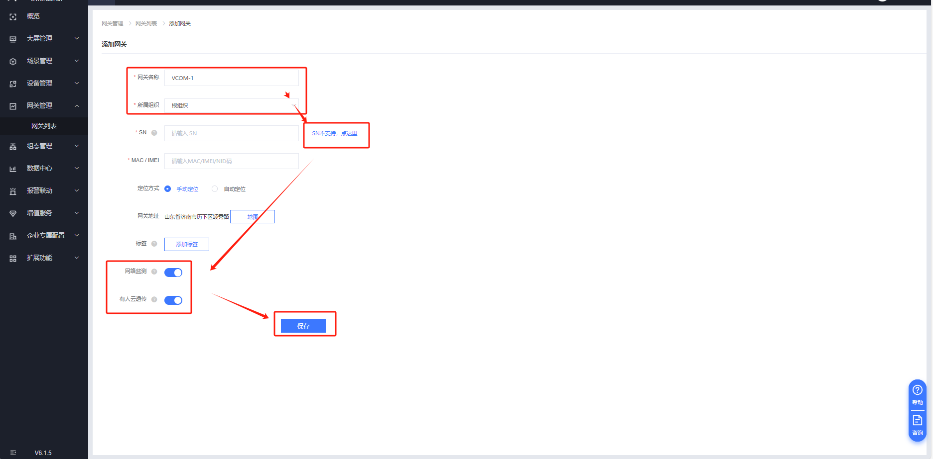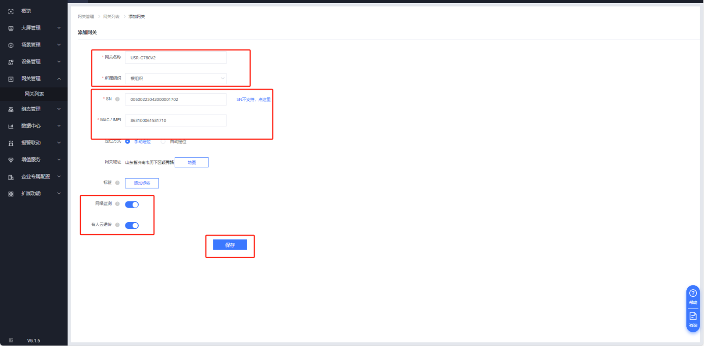 網(wǎng)關(guān)管理---網(wǎng)關(guān)列表---添加