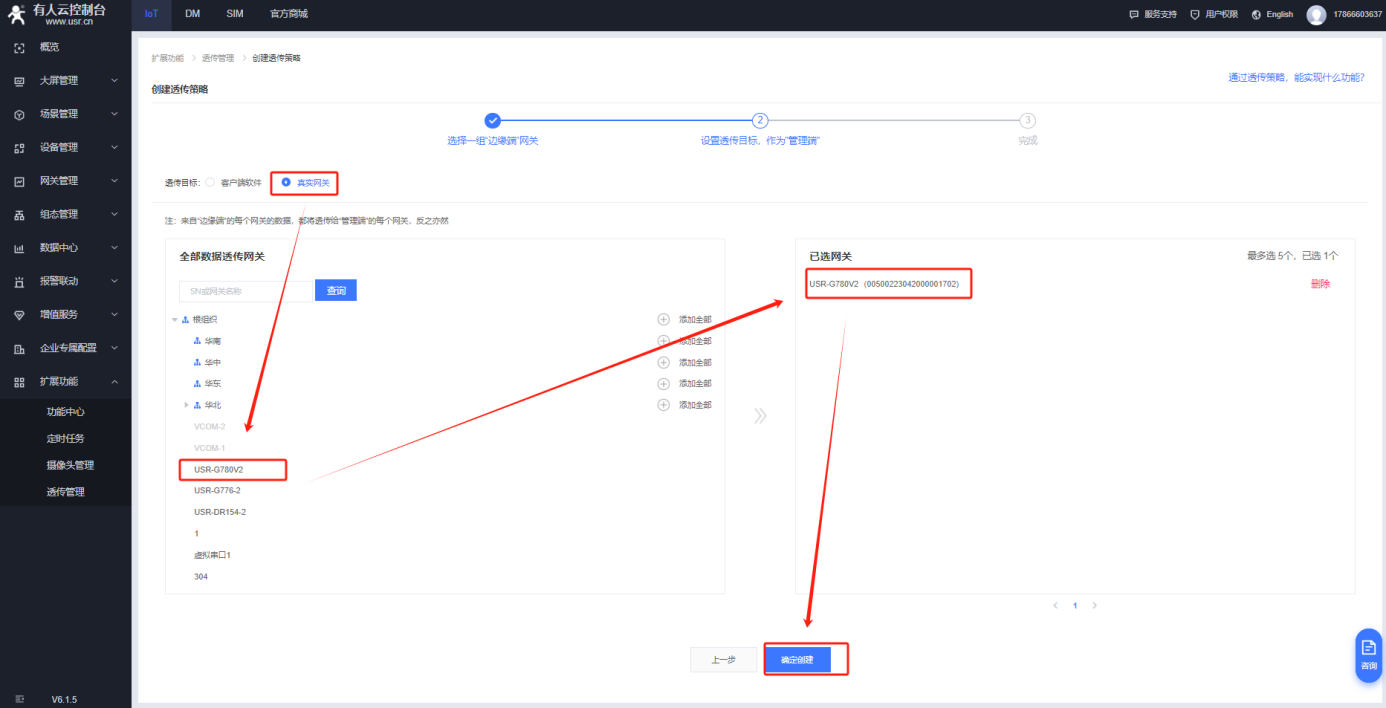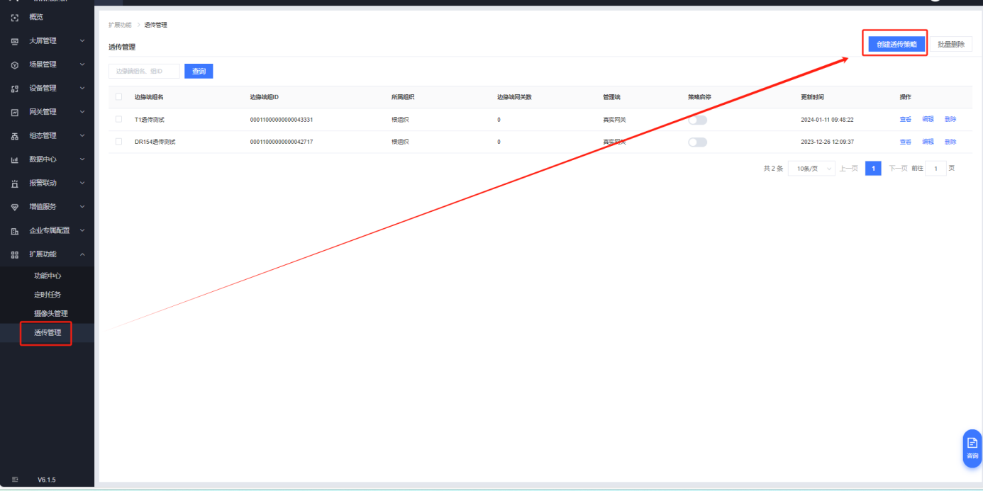 擴(kuò)展功能---透傳管理---創(chuàng)建透傳策略