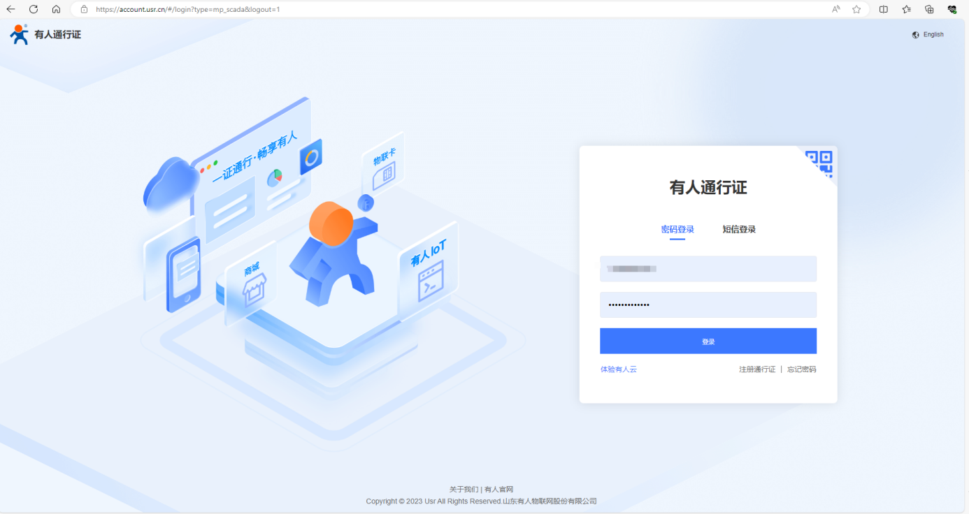 1、登錄有人云:https://account.usr.cn/#/login?type=mp_scada&logout=1