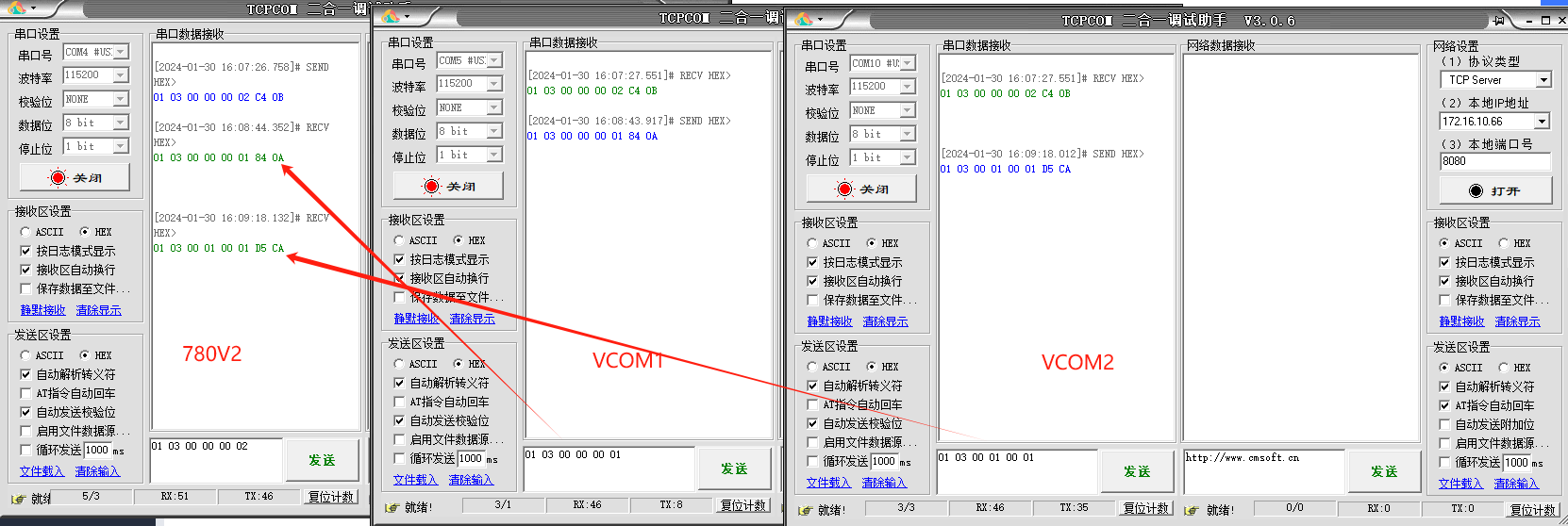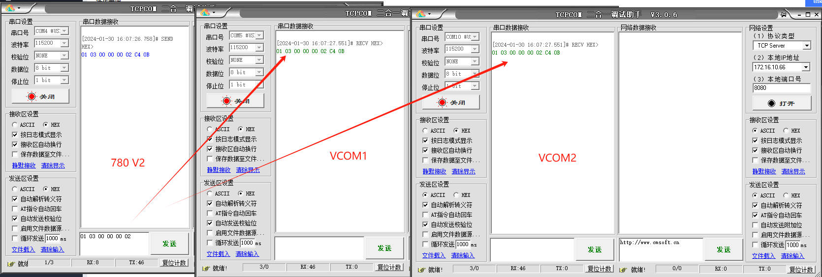虛擬串口和780 V2進(jìn)行數(shù)據(jù)互傳測試