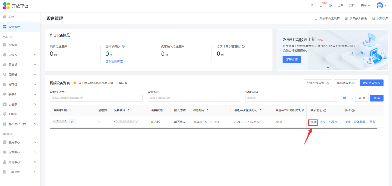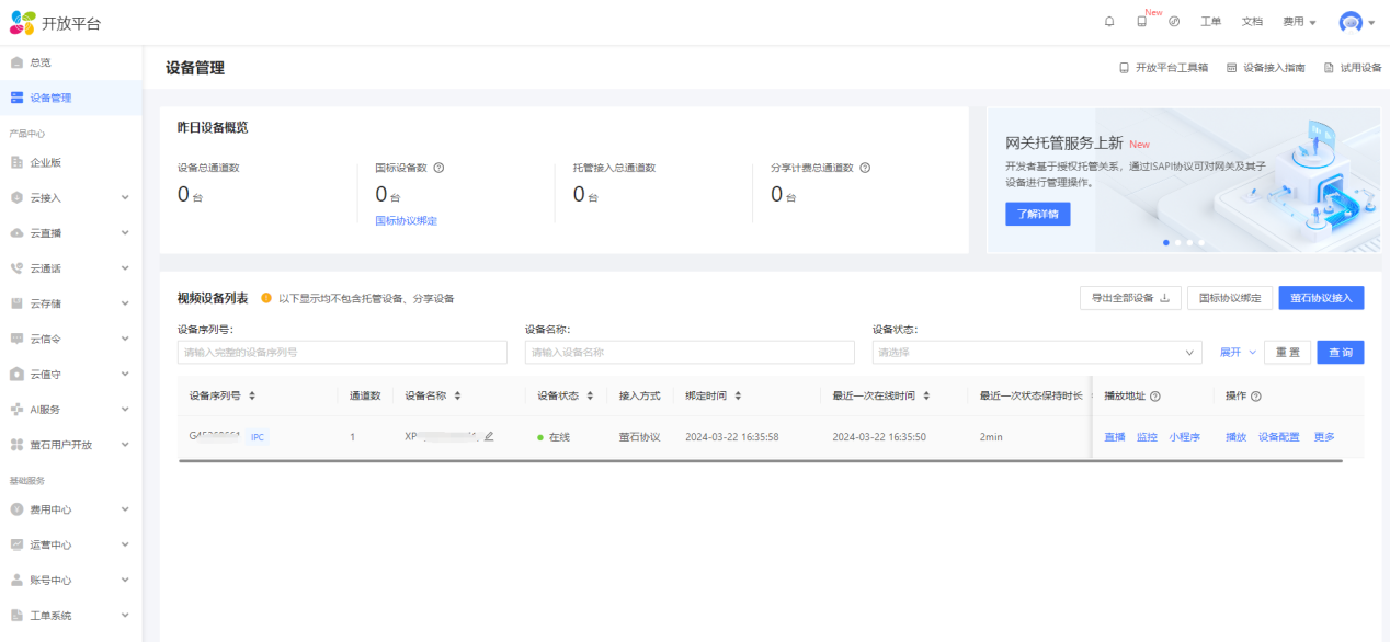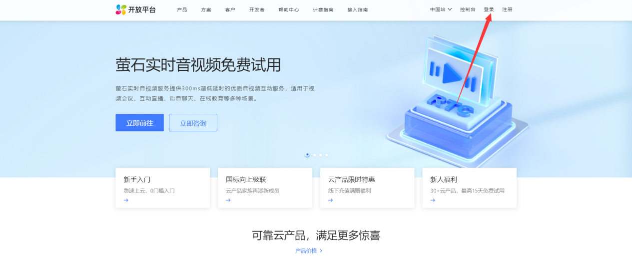 (1)進入螢石云開放平臺:https://open.ys7.com/,注冊并登錄控制臺