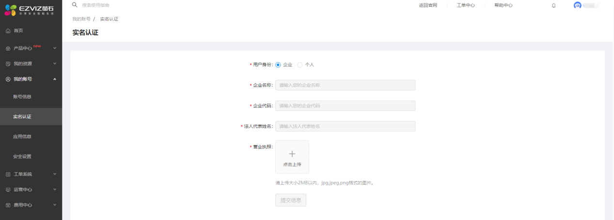 (2)登錄后根據(jù)提示進行實名認證,可自行選擇企業(yè)或個人認證