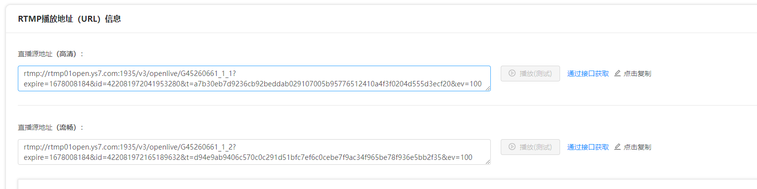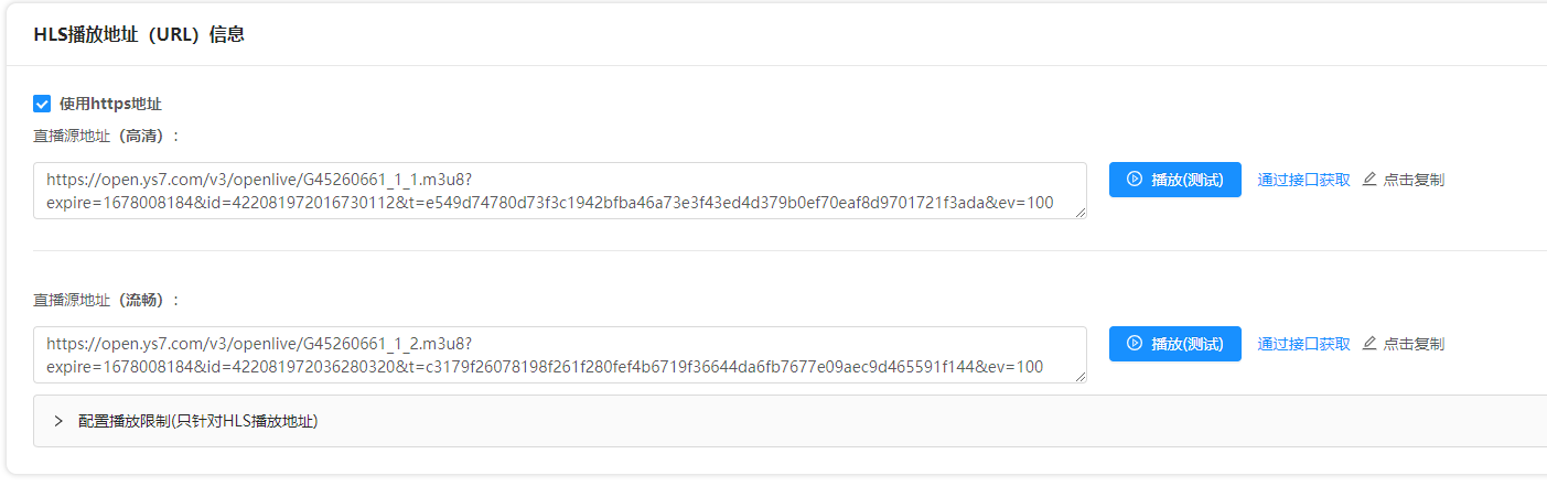 (6)在打開的界面找到 HLS播放地址 與 RTMP播放地址