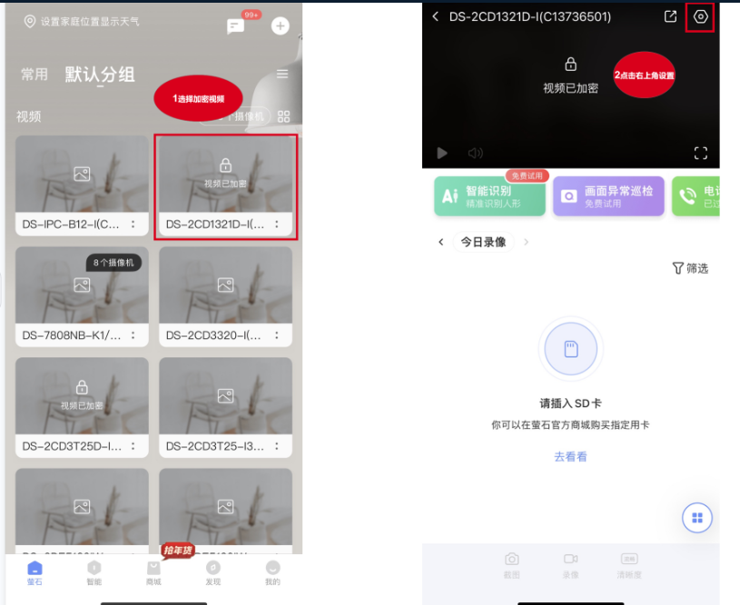 注:如果出現(xiàn)下方提示,需要根據(jù)步驟前往螢石云APP進行設置,步驟見下圖,若未出現(xiàn)可自行省略