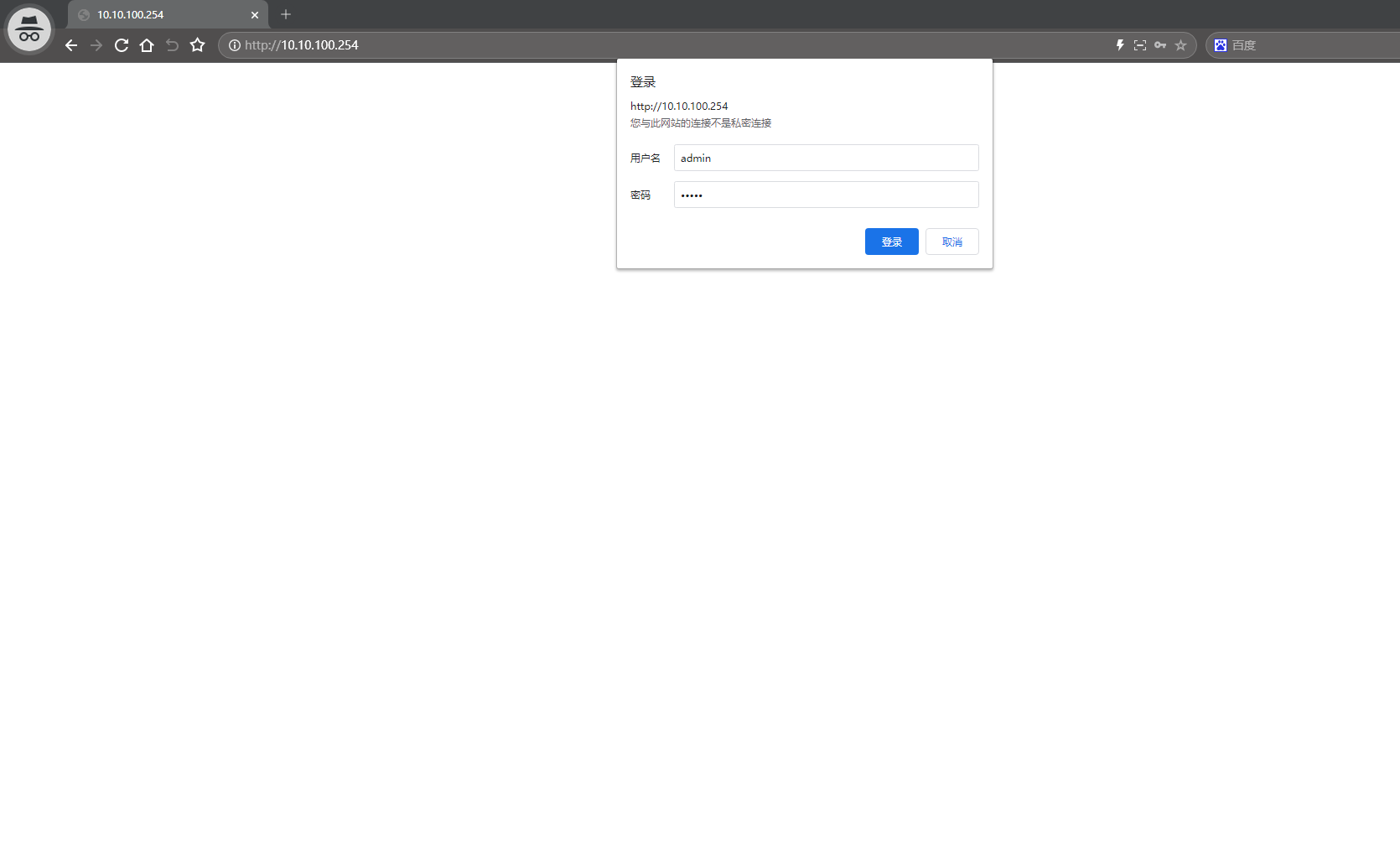 使用USR-W610默認(rèn)IP,10.10.100.254,在瀏覽器輸入登錄USR-W610內(nèi)置網(wǎng)頁,登錄名是admin,登錄密碼admin。