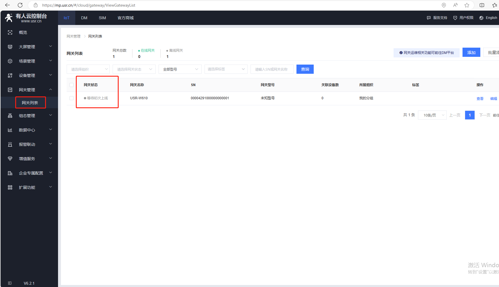 (3)網(wǎng)關狀態(tài),等待初次上線。