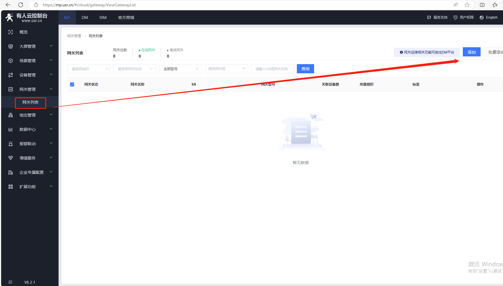 (1)打開有人云的網(wǎng)關列表,點擊添加。