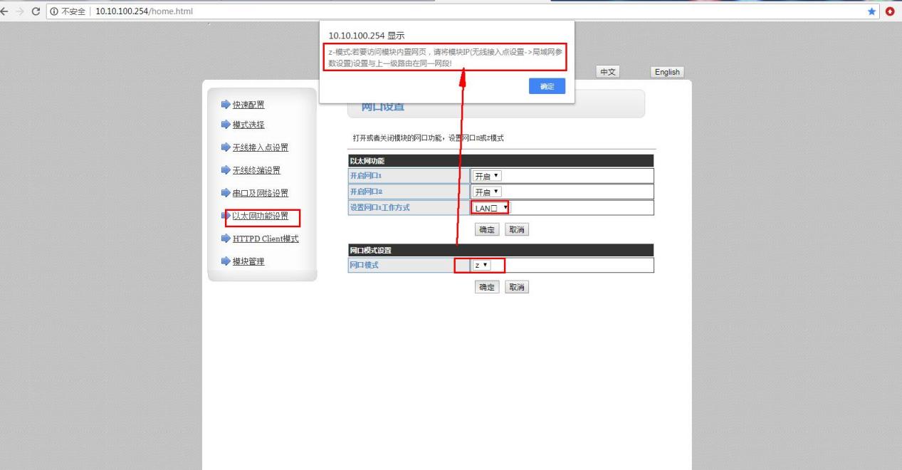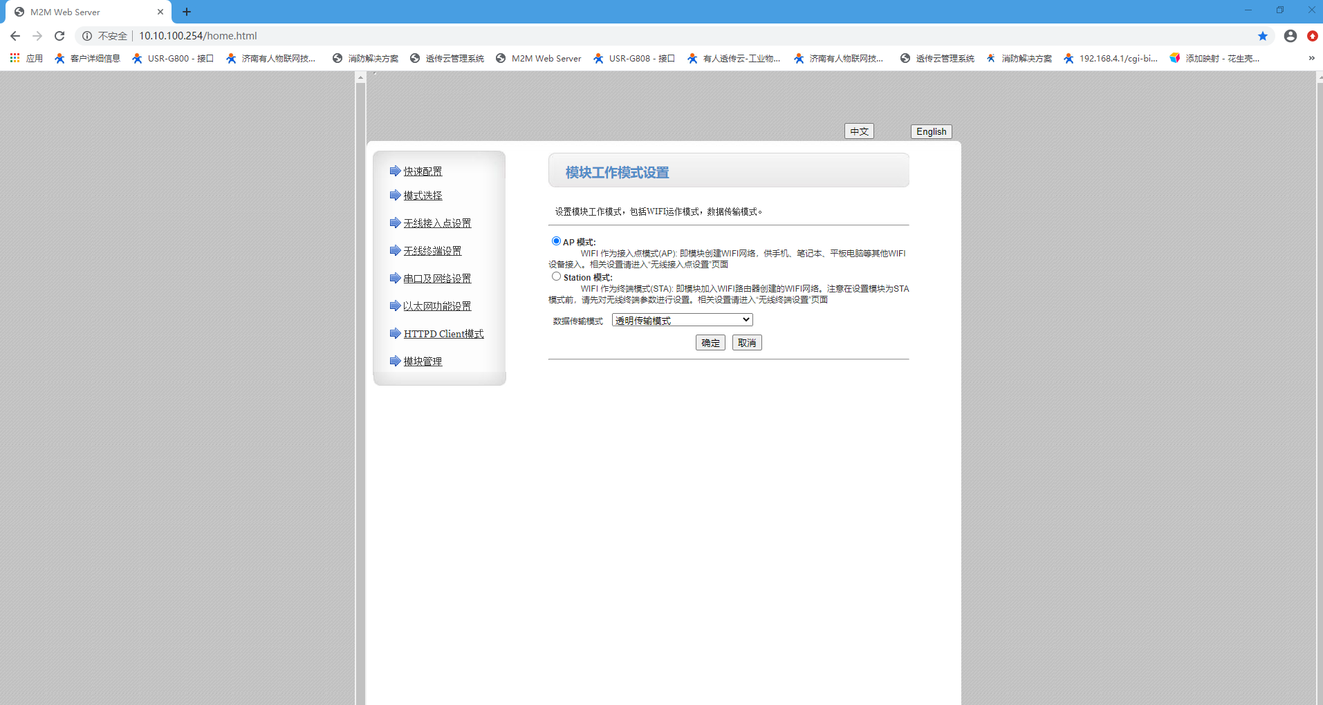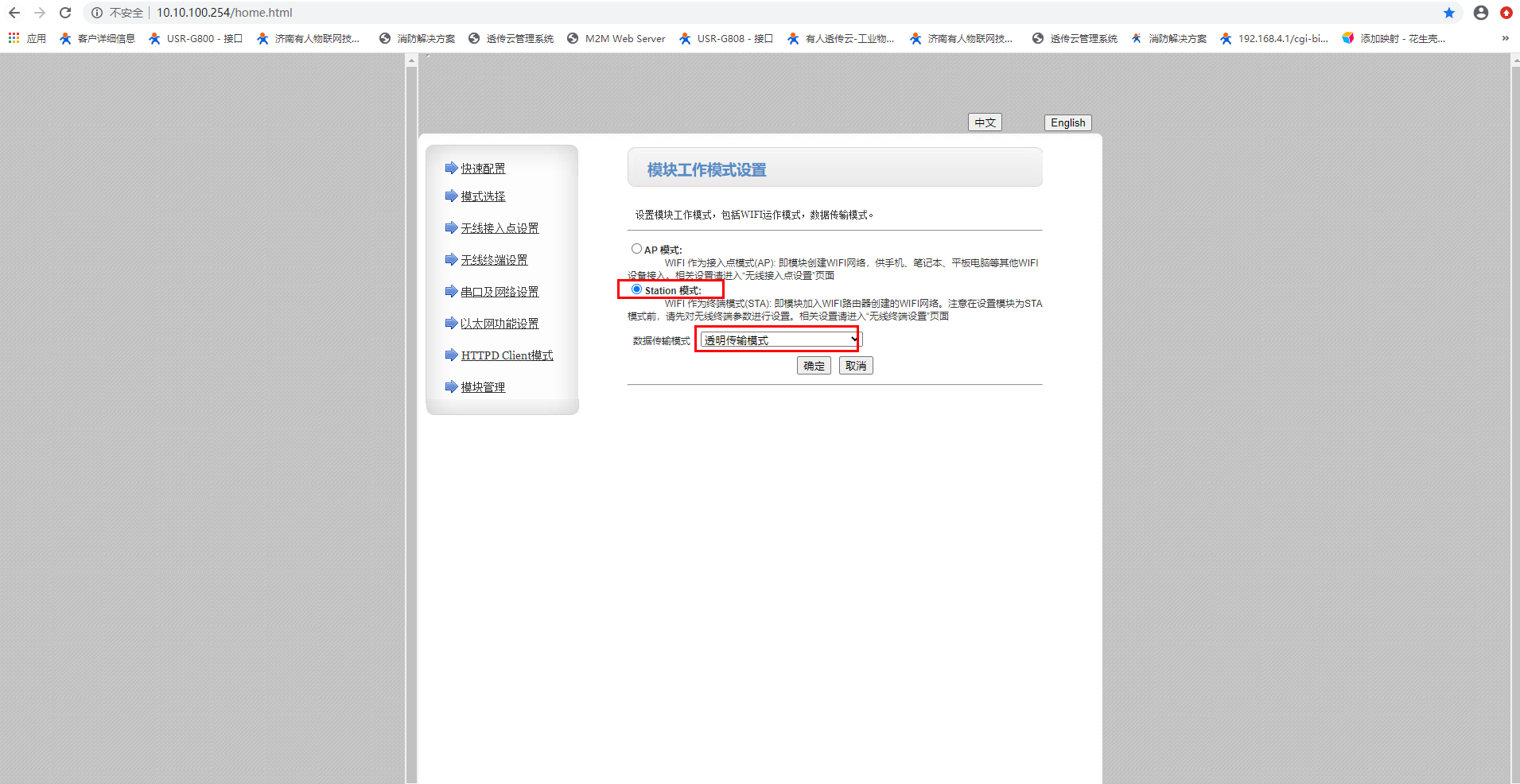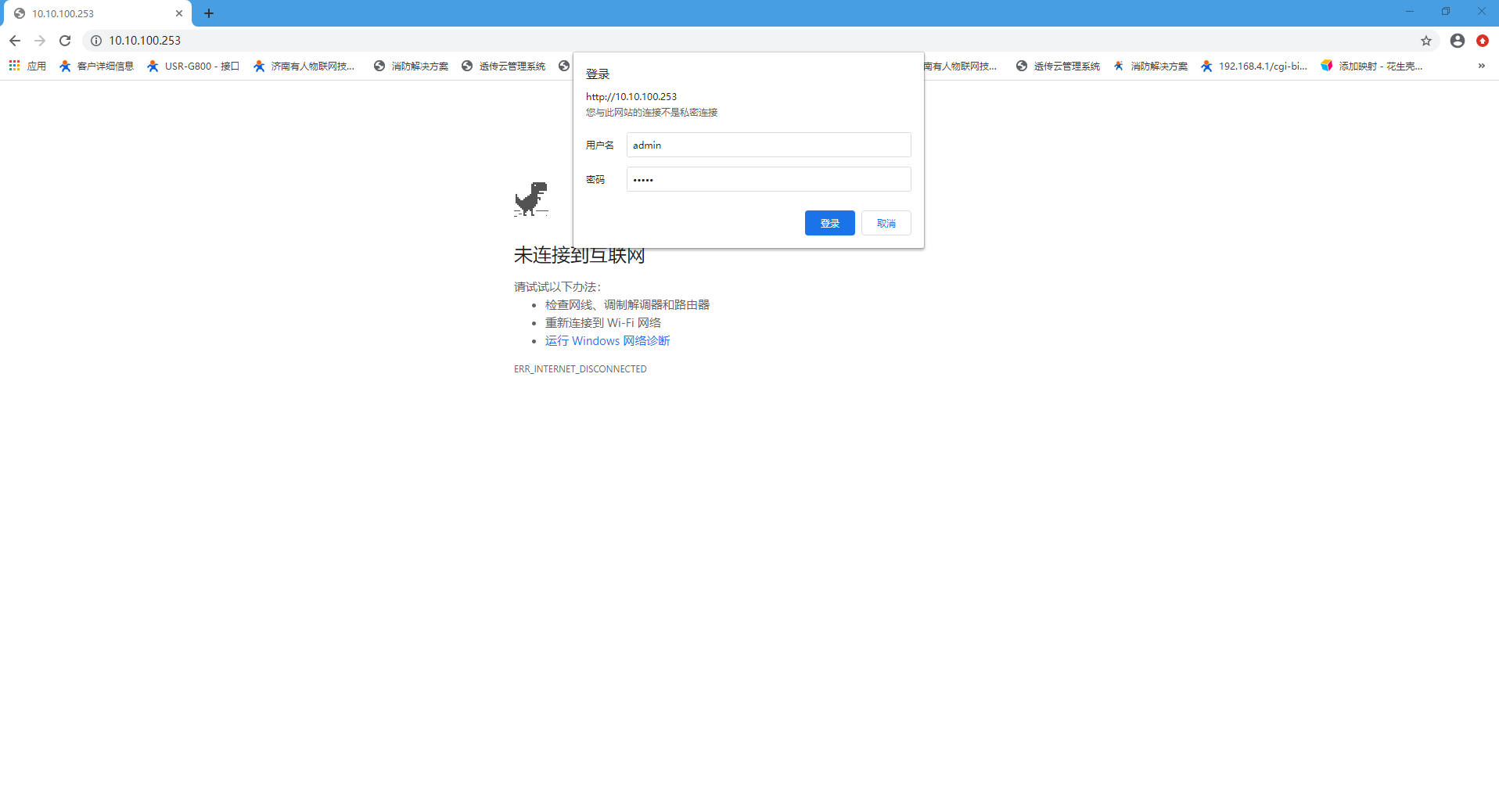 2、瀏覽器輸入USR-W630默認(rèn)IP,10.10.100.254 登錄USR-W630的內(nèi)置網(wǎng)頁。