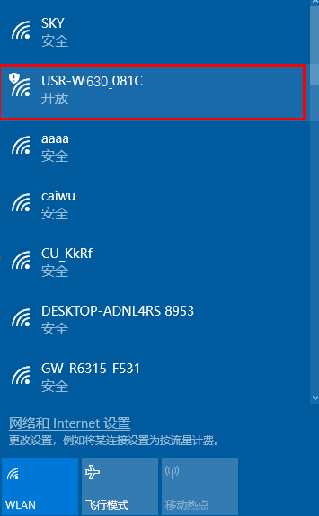 1、禁用其他網(wǎng)卡,保留無線網(wǎng)卡,電腦搜索第二個USR-W630的WiFi名稱USR-W630_081C,并連接。