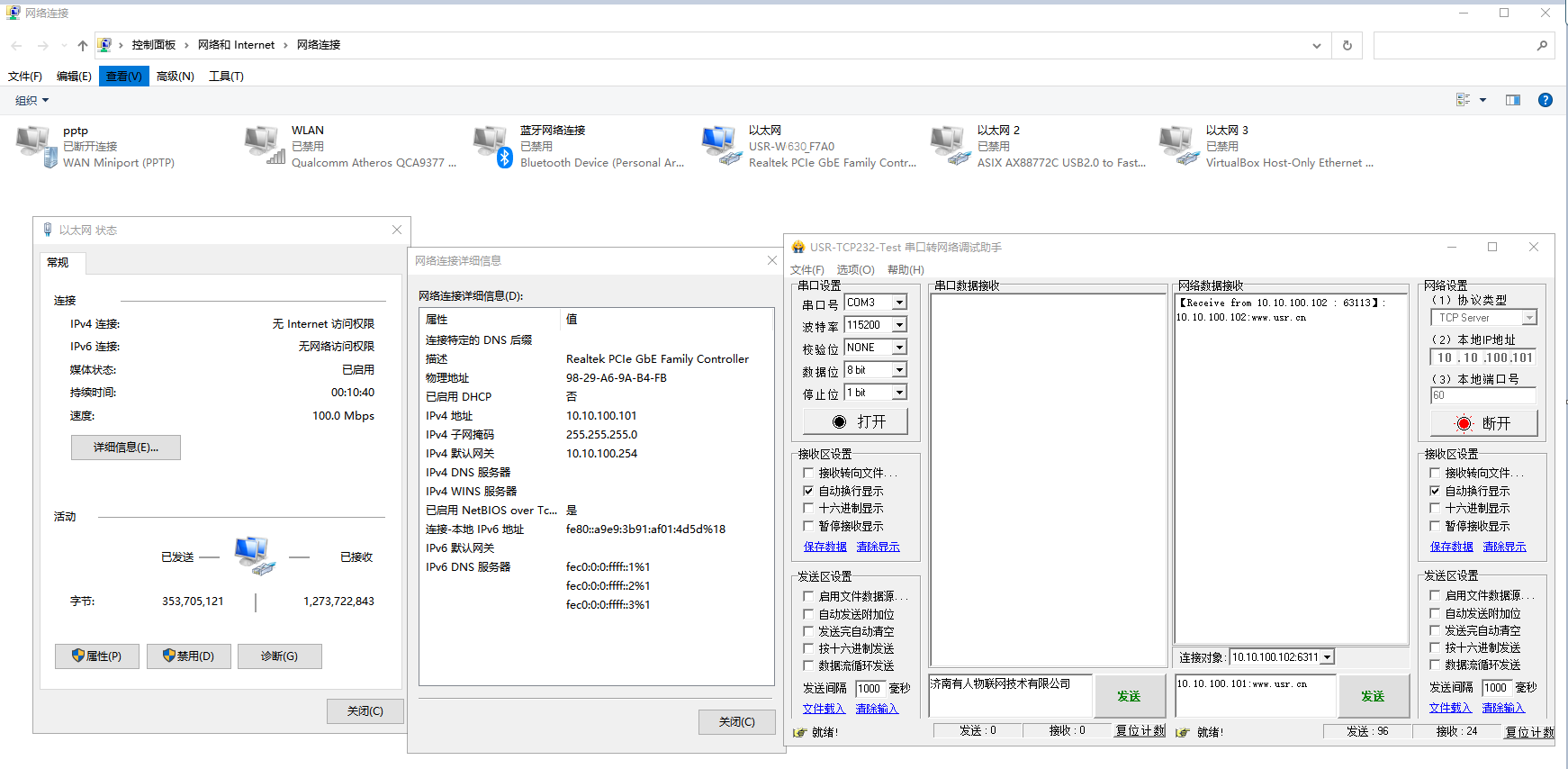 第二個USR-W630 設(shè)置STA+橋接模式,第二臺電腦用網(wǎng)線連接W630的網(wǎng)口,使用電源適配給USR-W630上電。
