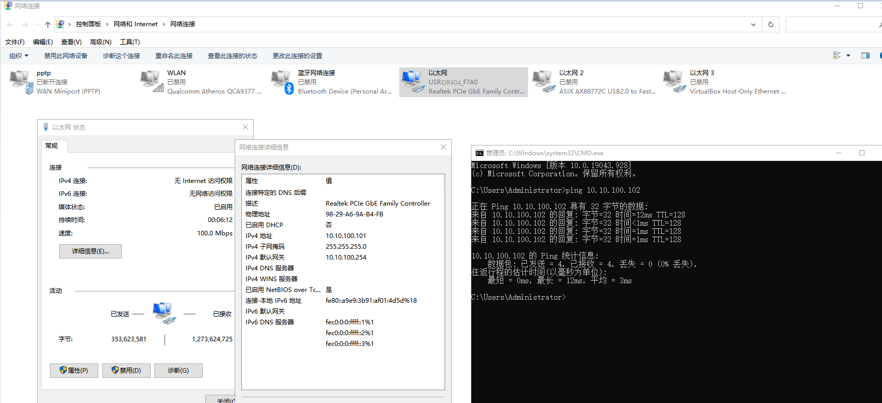 4、打開(kāi)第2臺(tái)電腦的控制面板,將以太網(wǎng)卡設(shè)置靜態(tài)IP,IPv4設(shè)置10.10.100.102,子網(wǎng)掩碼255.255.255.0,默認(rèn)網(wǎng)關(guān)10.10.100.253,點(diǎn)擊確定。
