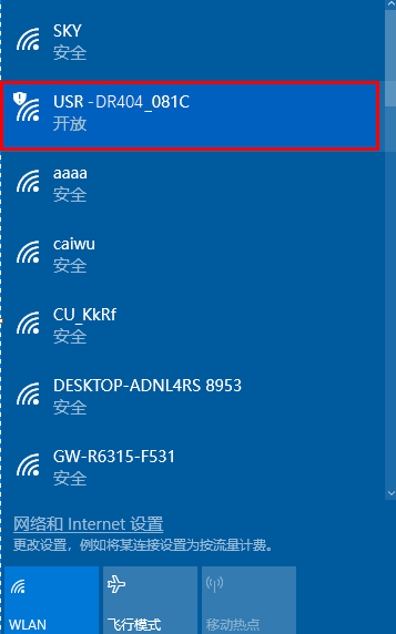 1、禁用其他網(wǎng)卡,保留無(wú)線網(wǎng)卡,電腦搜索第二個(gè)USR-DR404的WiFi名稱USR-DR404_081C,并連接。
