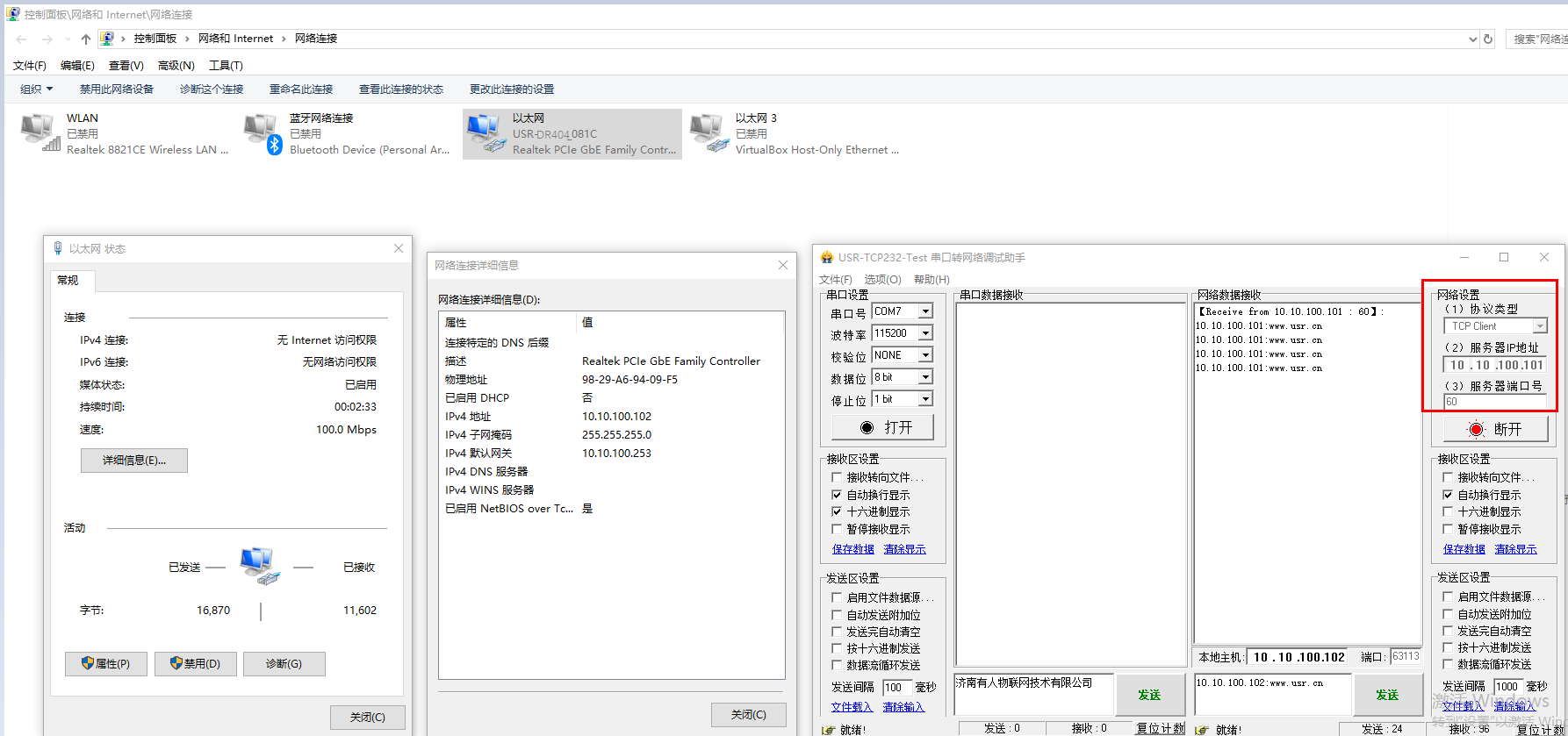 三、第一個(gè)USR-DR404參數(shù)設(shè)置: