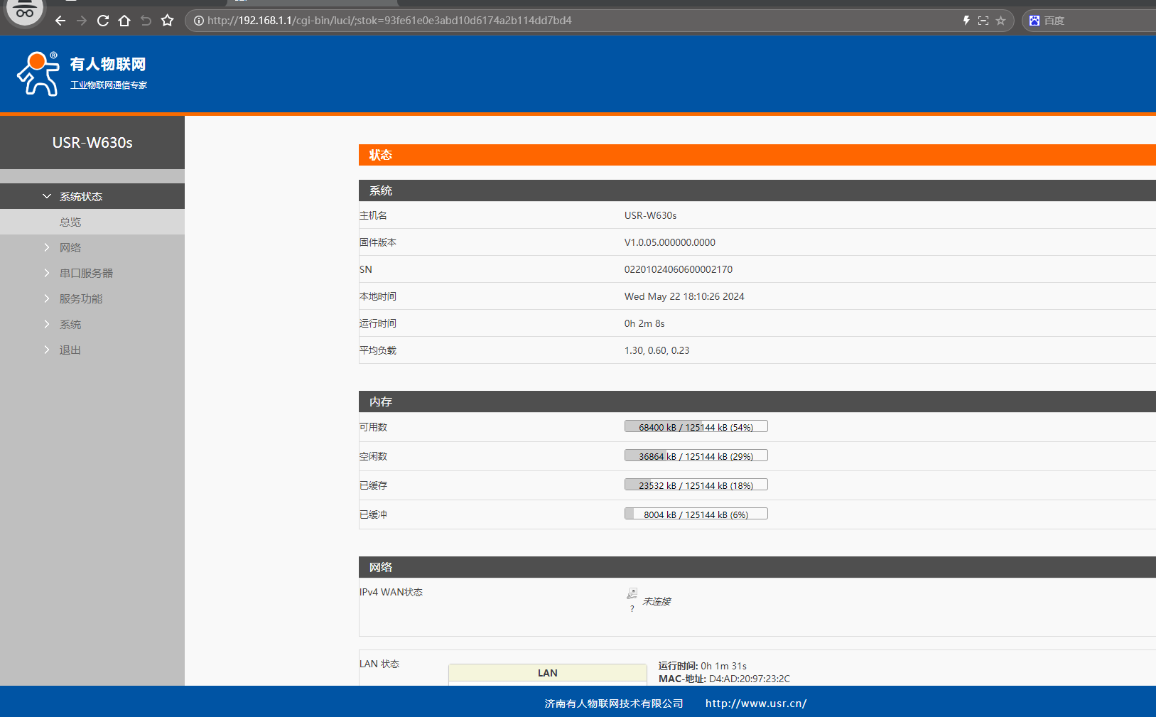 1、登陸USR-W630s的網(wǎng)頁(yè)