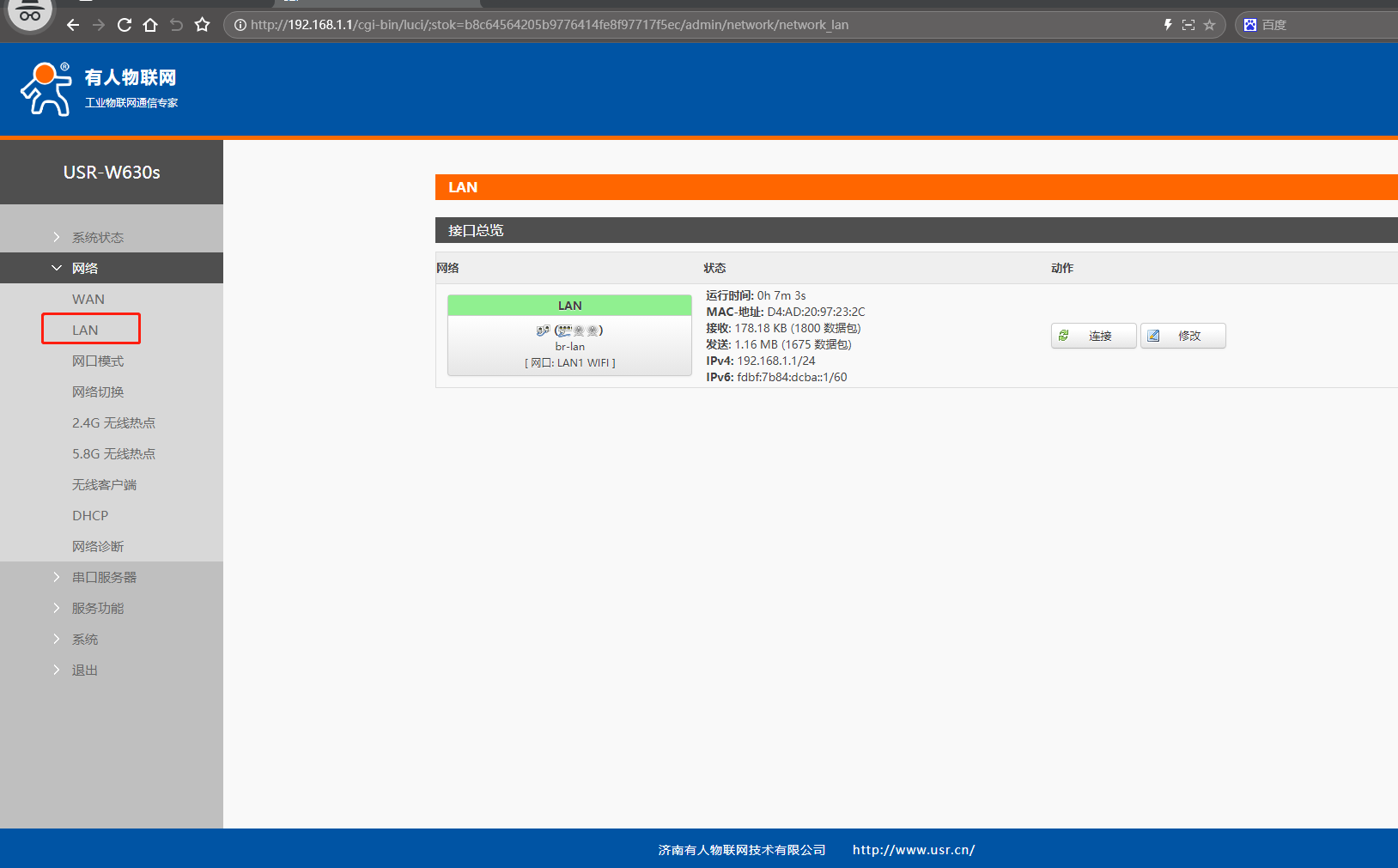 1、登陸USR-W630s的網(wǎng)頁(yè)