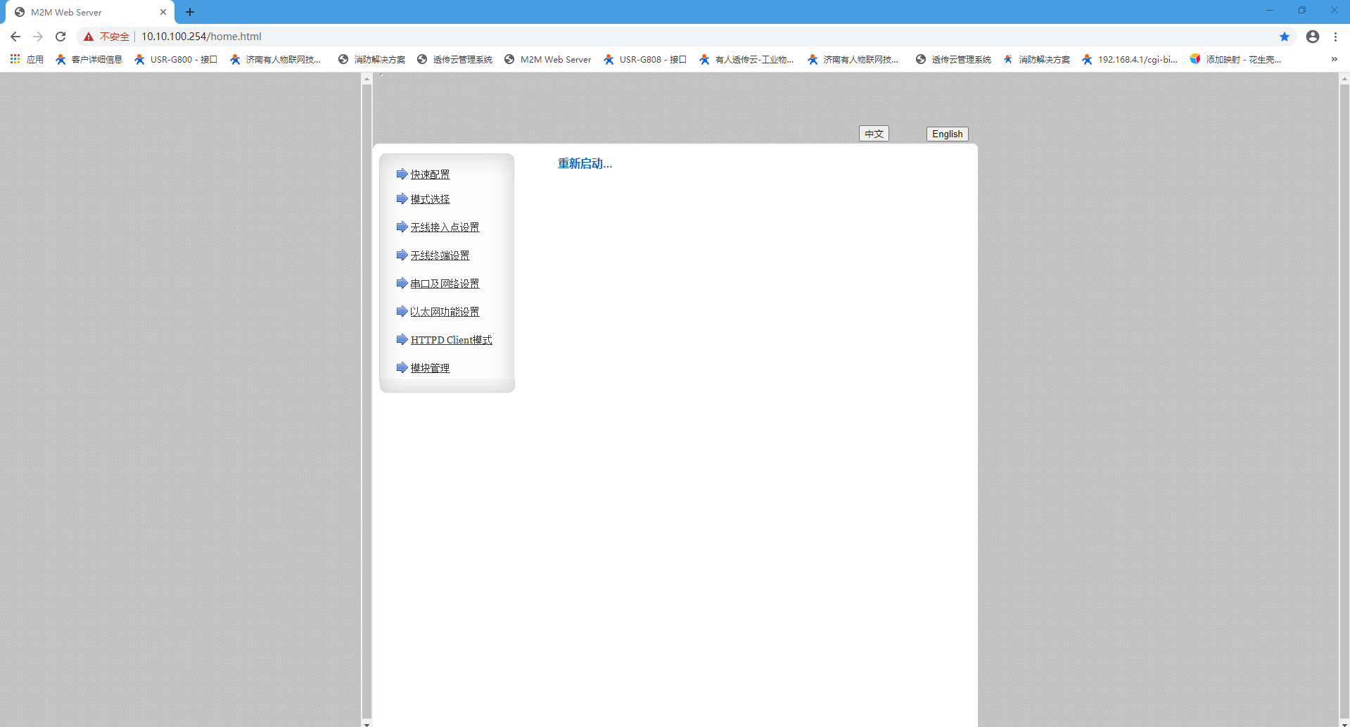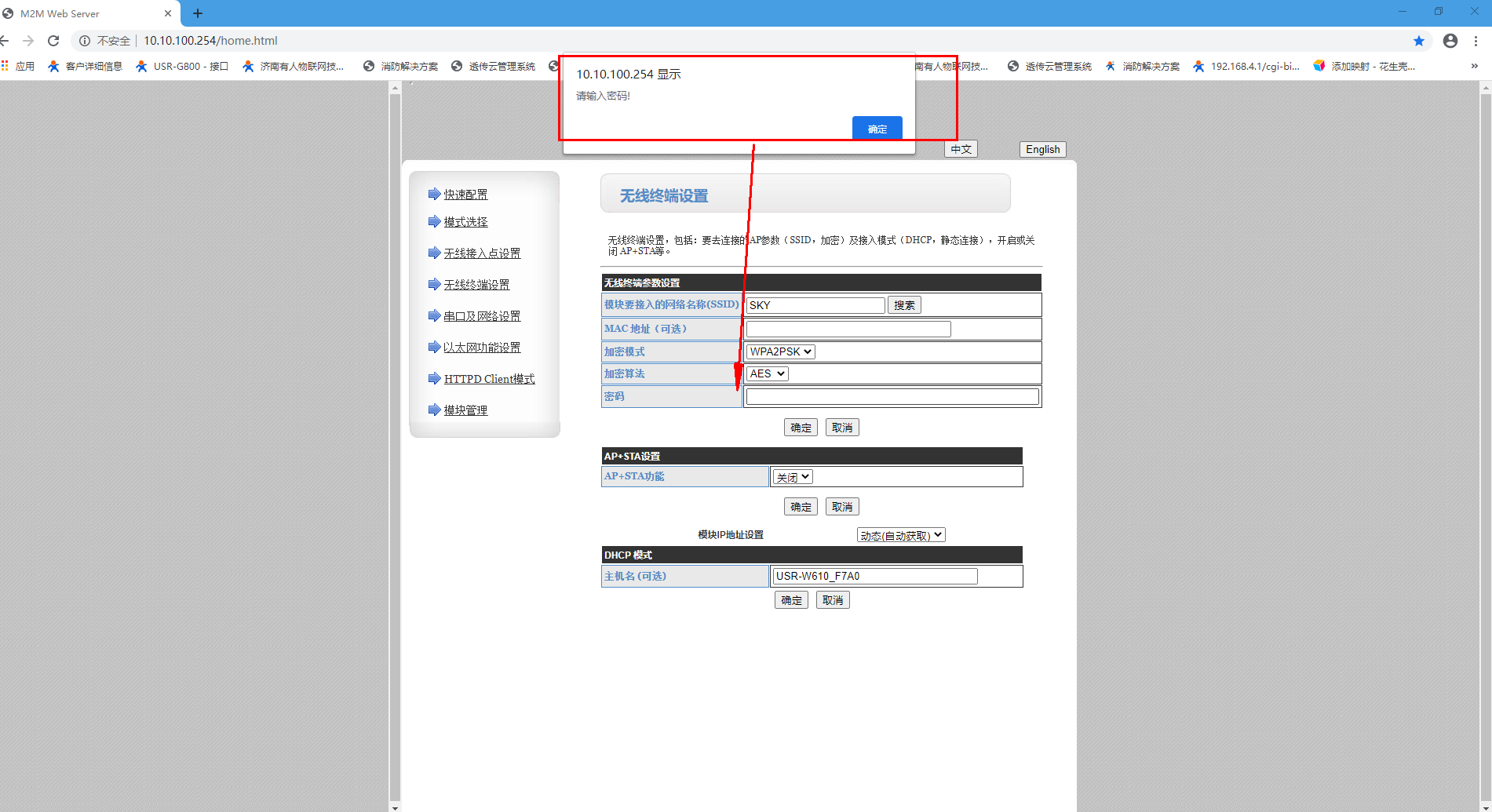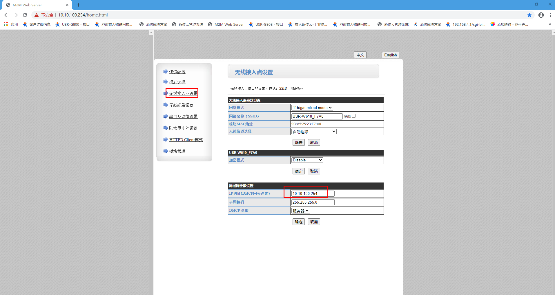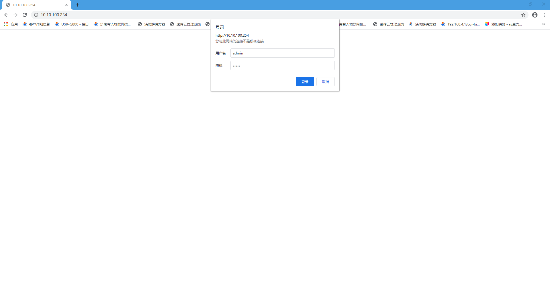 2、瀏覽器輸入USR-W610默認(rèn)IP,10.10.100.254 登錄USR-W610的內(nèi)置網(wǎng)頁。