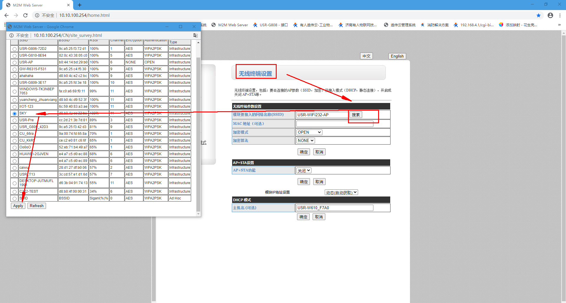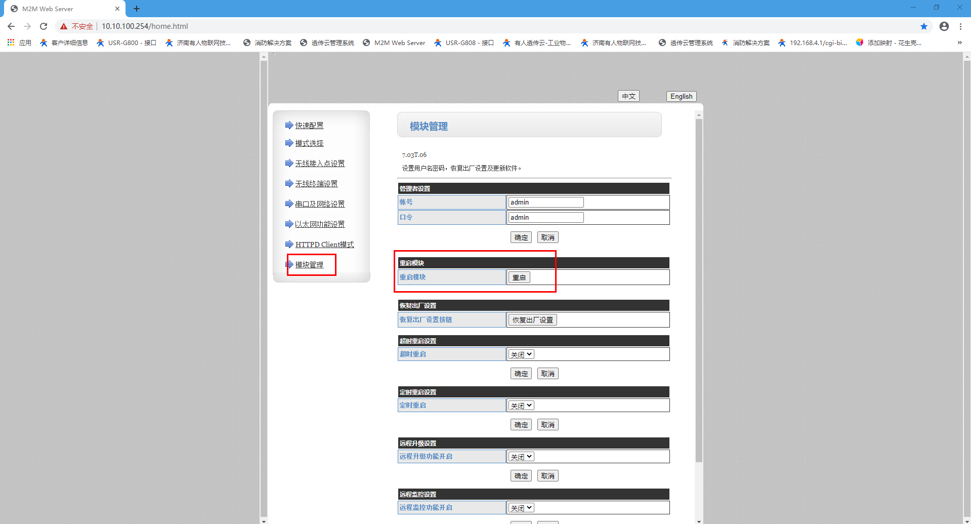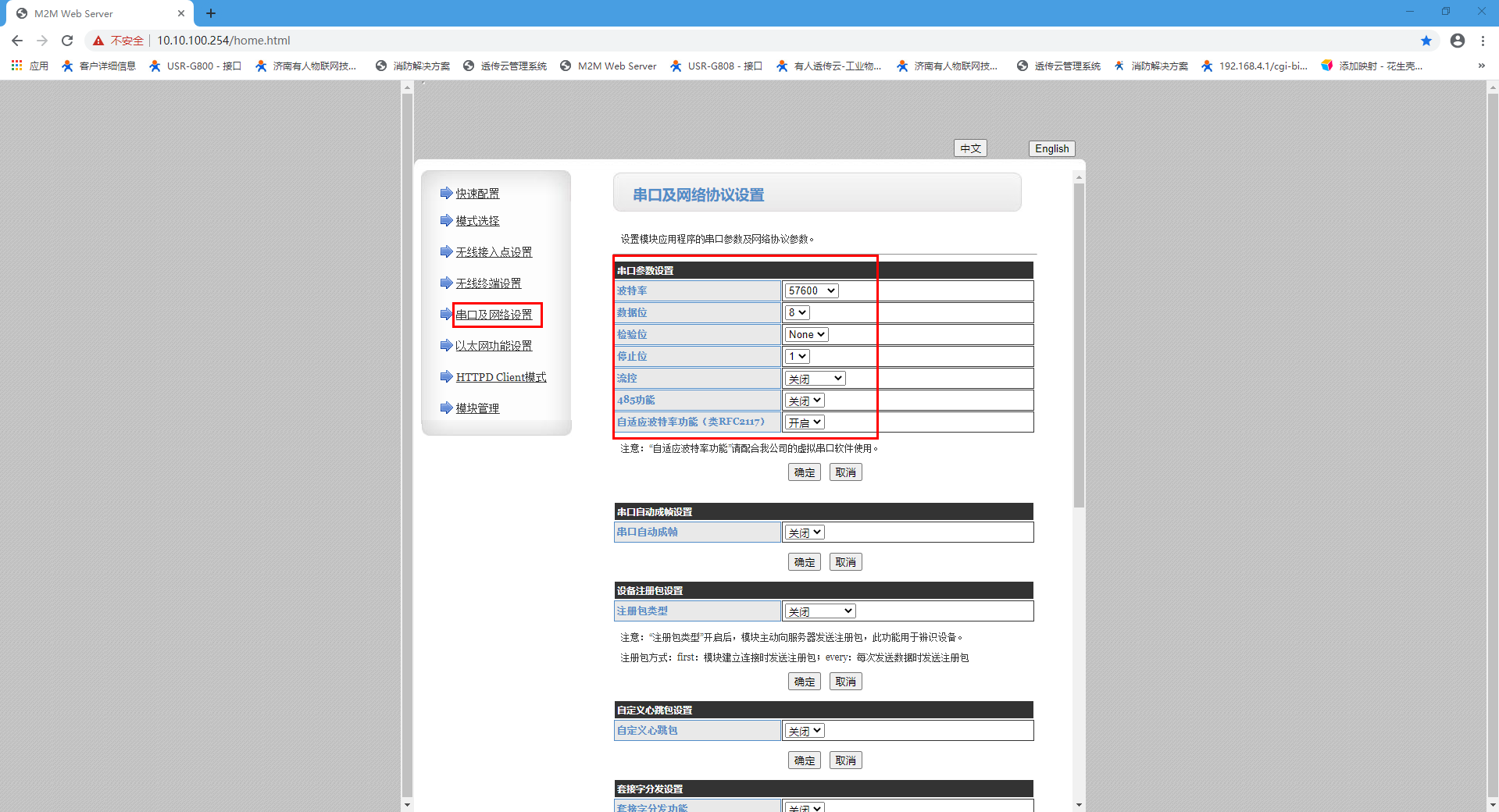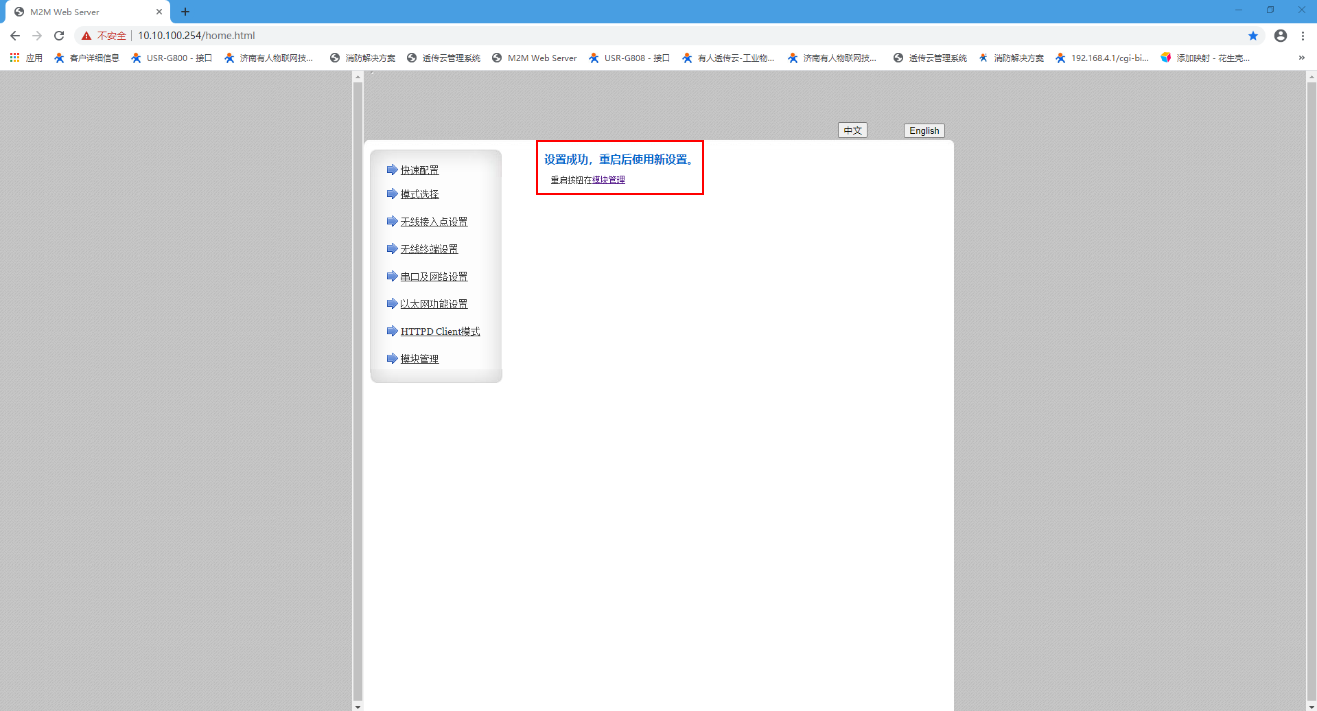 2、瀏覽器輸入USR-W610默認(rèn)IP,10.10.100.254 登錄USR-W610的內(nèi)置網(wǎng)頁。