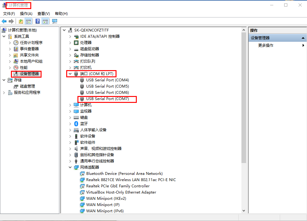 1、電腦打開計算機管理,找到設(shè)備管理器,查看端口COM口號。