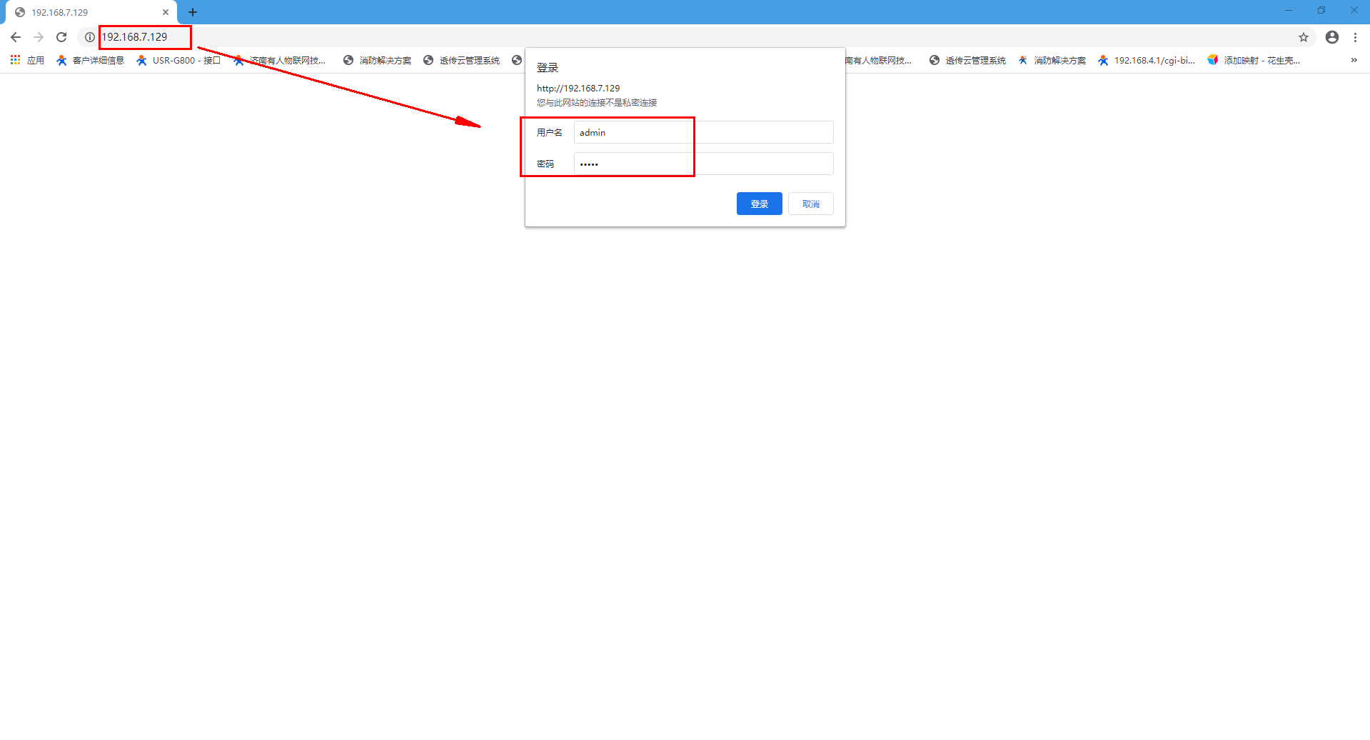 2、瀏覽器輸入USR-W610的IP 192.168.7.129,登錄USR-W610的內(nèi)置網(wǎng)頁。
