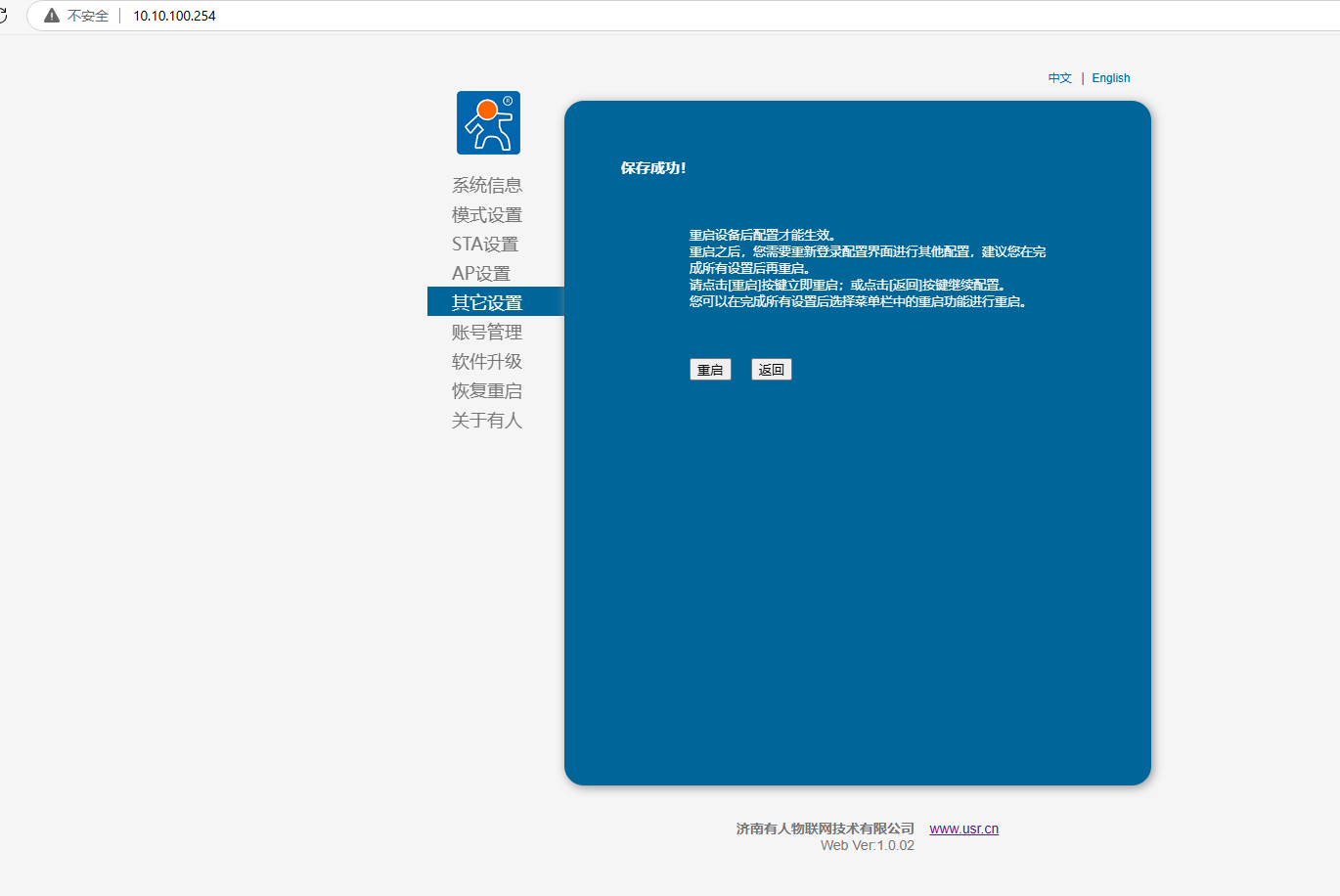 1、電腦連接USR-DR164的WiFi,瀏覽器輸入10.10.100.254登陸網(wǎng)頁(yè)