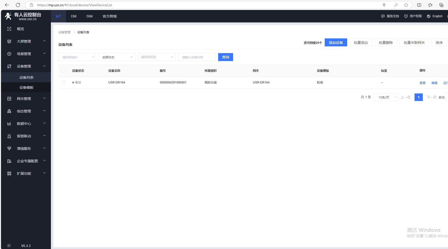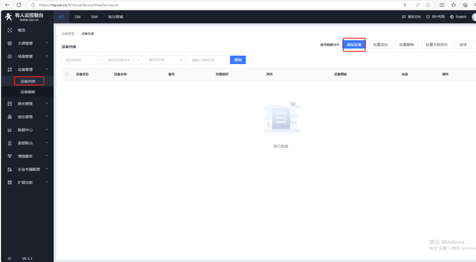 (4)添加設(shè)備,點(diǎn)擊設(shè)備管理,點(diǎn)擊設(shè)備列表,點(diǎn)擊添加設(shè)備。