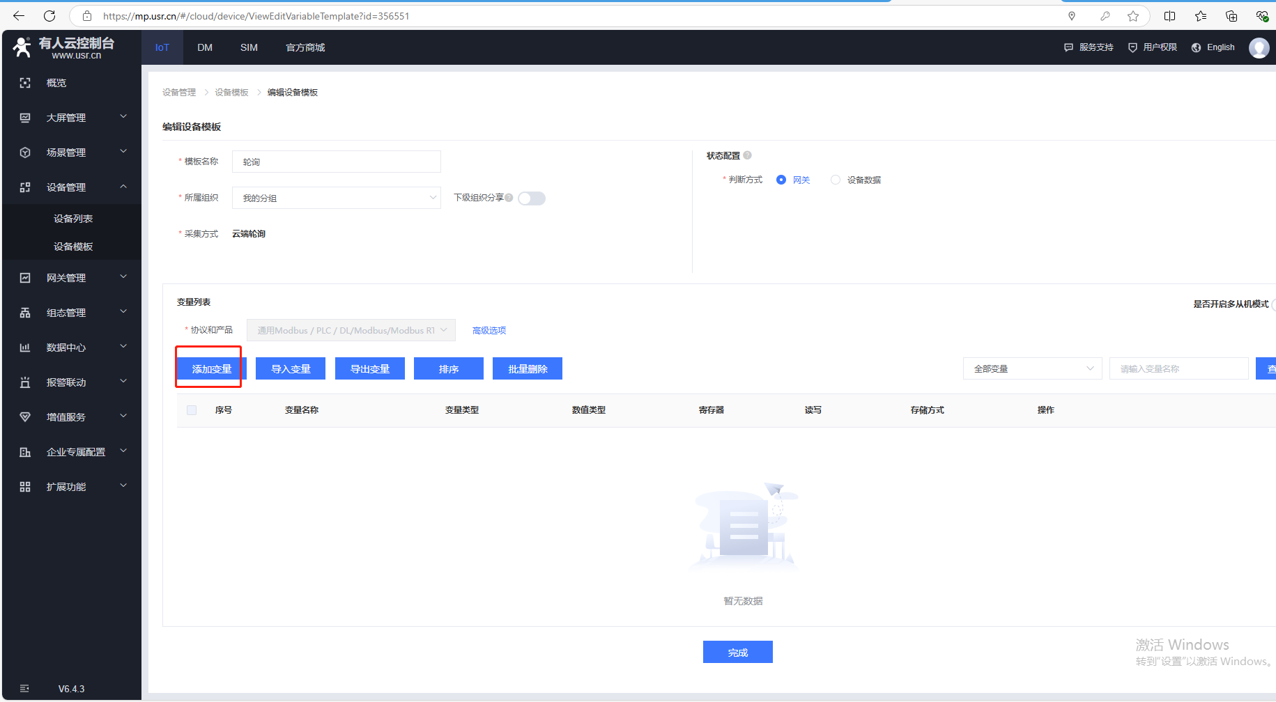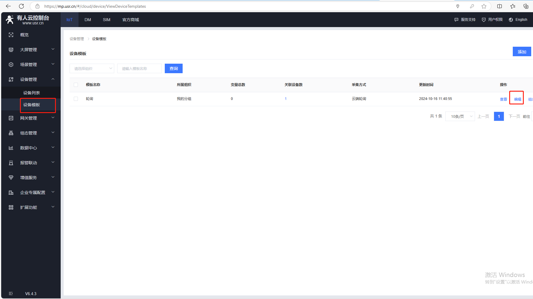 (7)添加變量,點(diǎn)擊設(shè)備管理,點(diǎn)擊設(shè)備模板,點(diǎn)擊編輯。