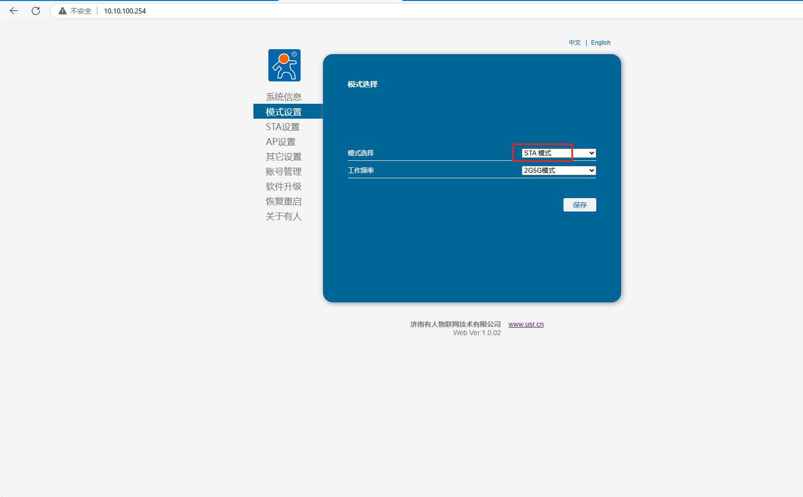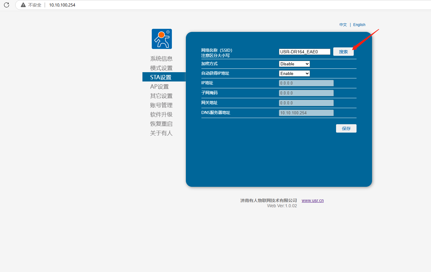 瀏覽器輸入10.10.100.254,用戶名和密碼都是admin,登陸USR-DR164網(wǎng)頁(yè)。