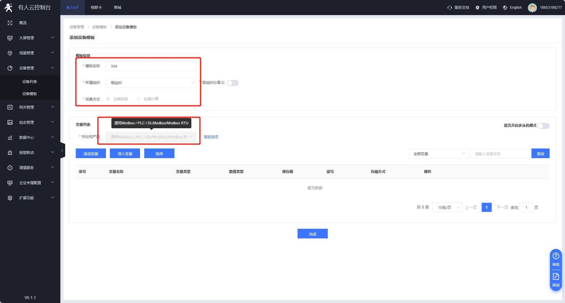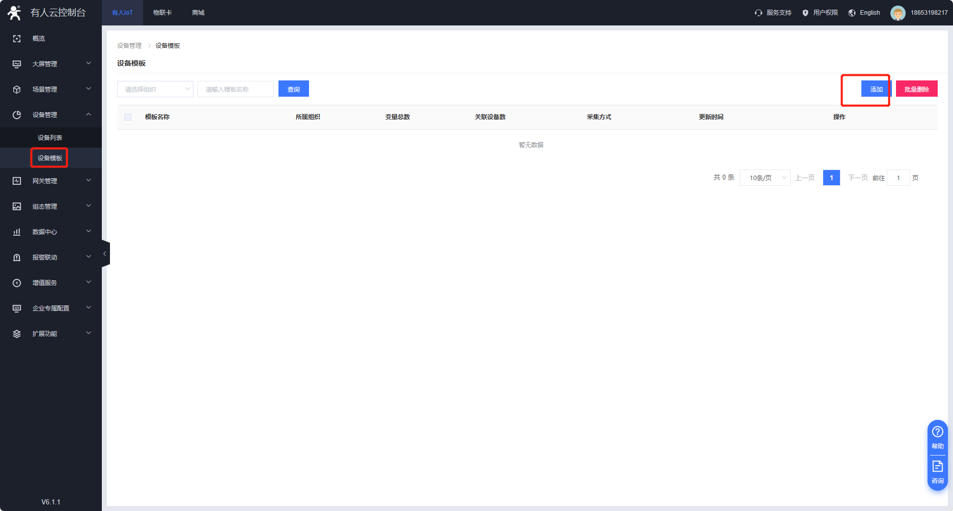 3、新建模板,設(shè)備管理--設(shè)備模板--添加模板