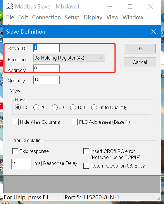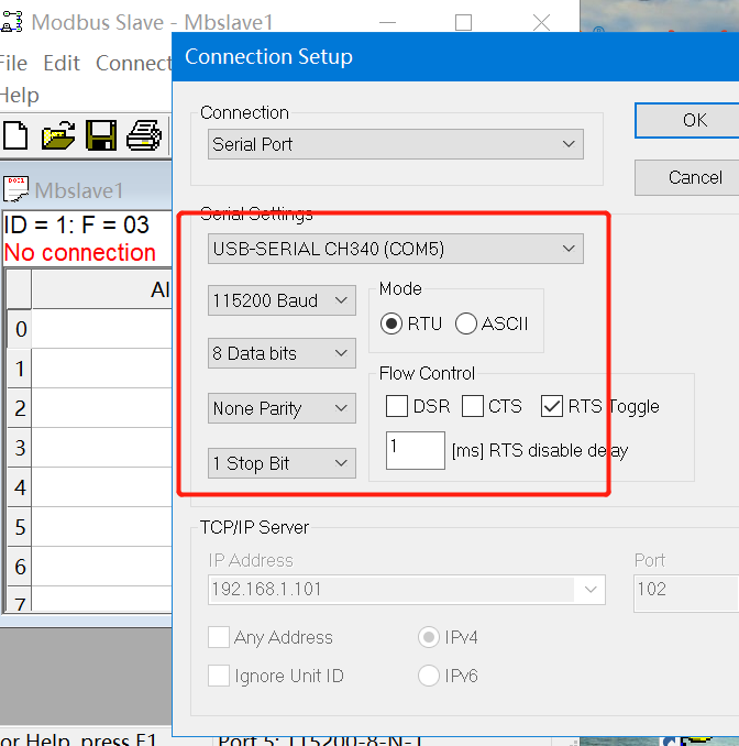 1、打開modbus slave軟件,選擇串口以及設(shè)置串口參數(shù)