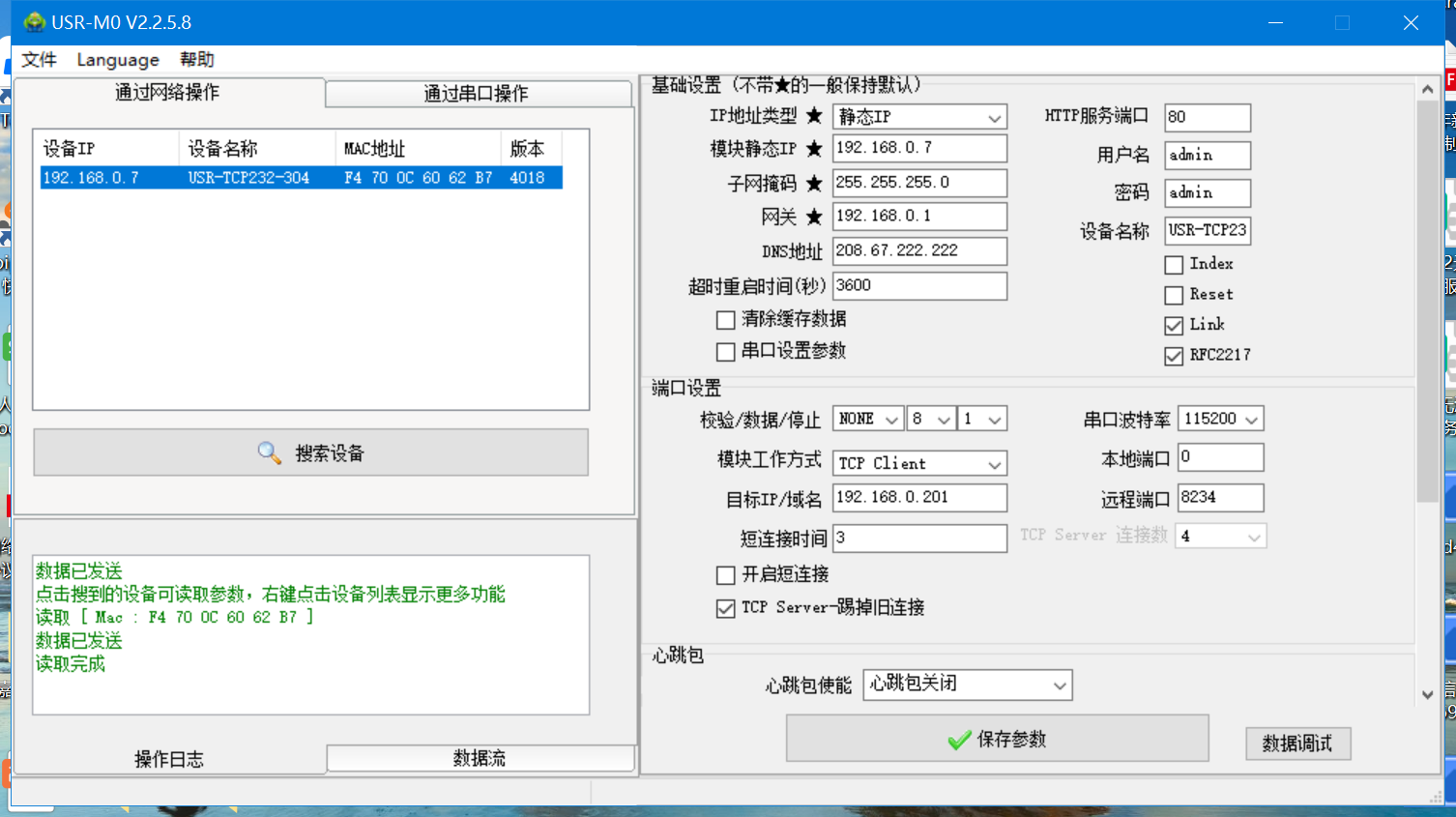 五、USR-TCP232-304參數(shù)配置