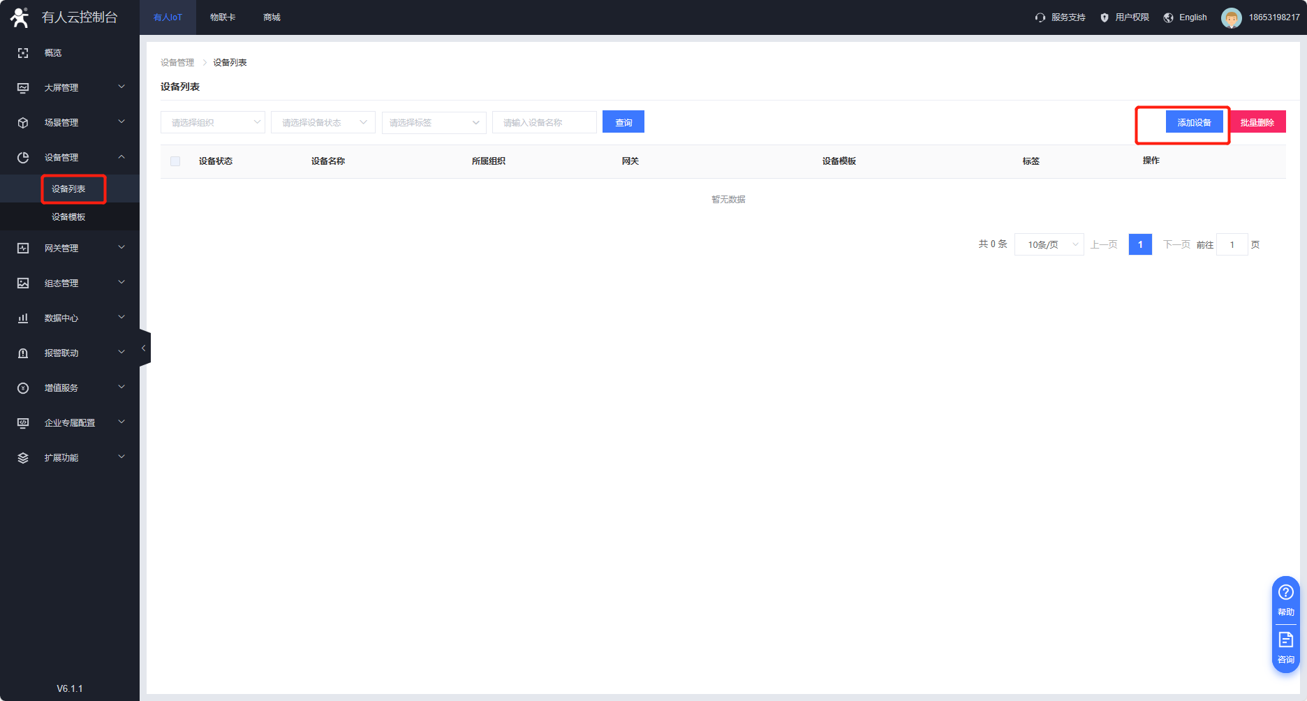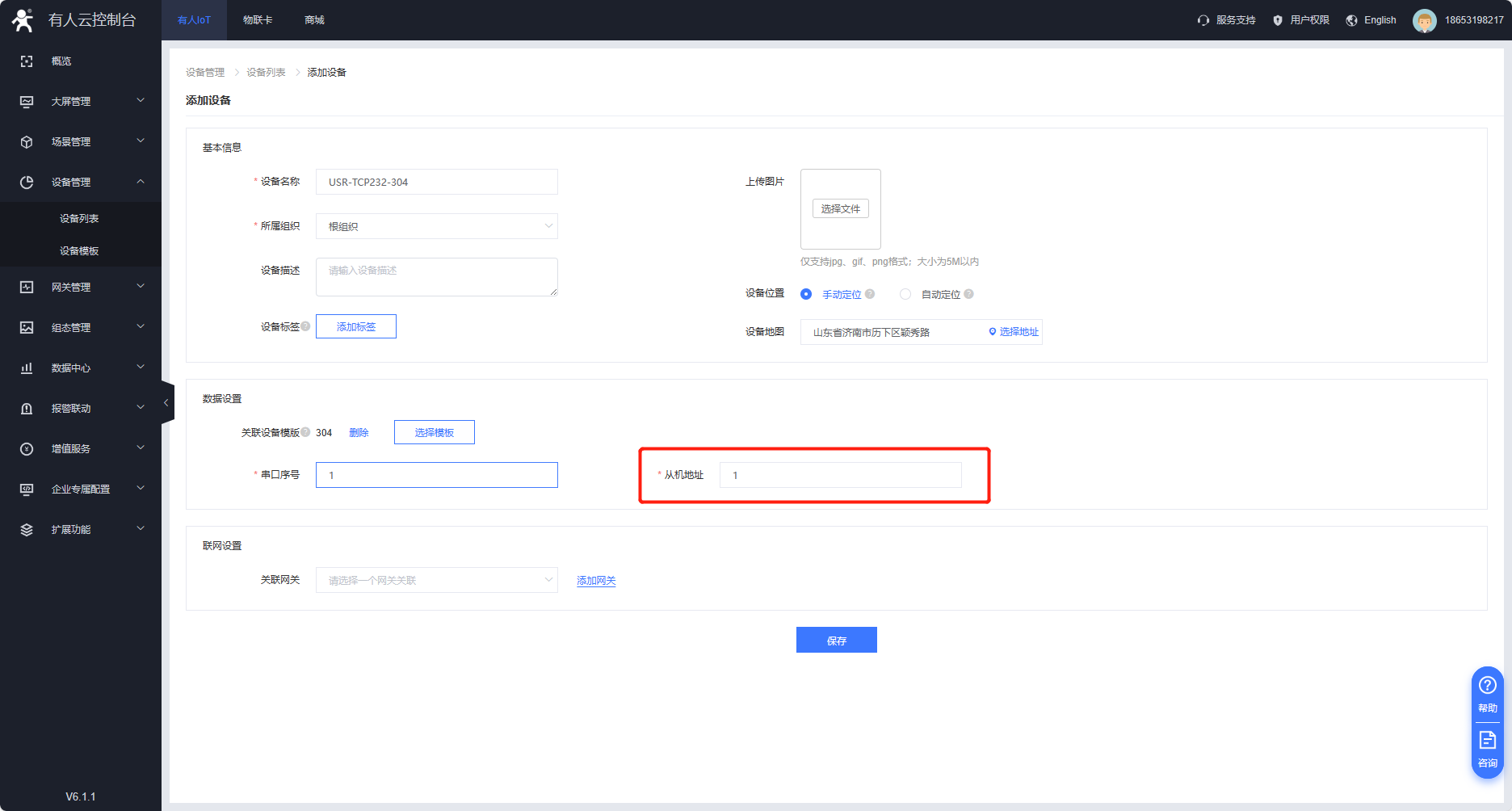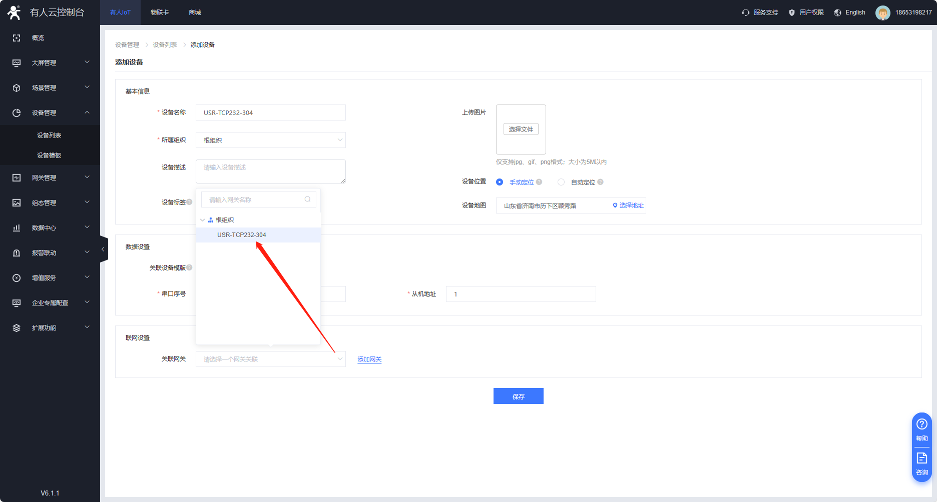 云平臺添加設(shè)備,在設(shè)備管理---設(shè)備列表--添加設(shè)備