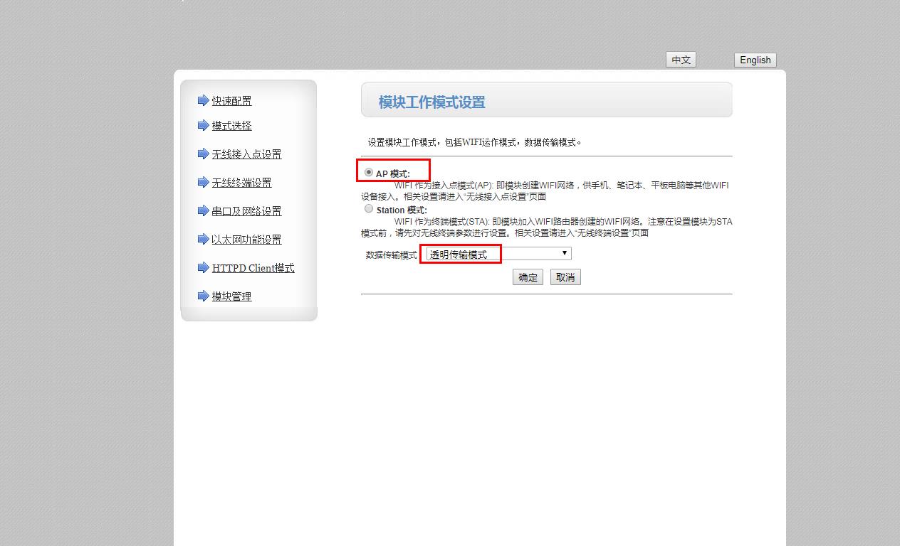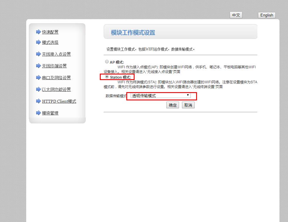 在網(wǎng)頁上將工作模式設(shè)置為STA模式,保存參數(shù)。