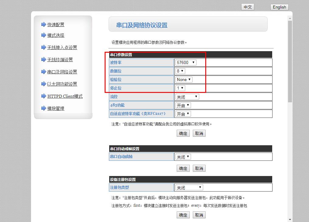 USR-DR404默認(rèn)串口參數(shù)是57600,NONE,8,1