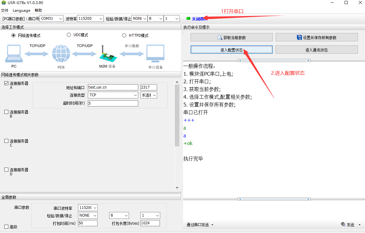 4.串口和服務(wù)器建立連接,互發(fā)數(shù)據(jù)