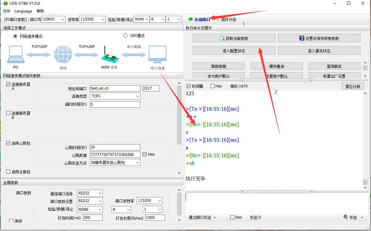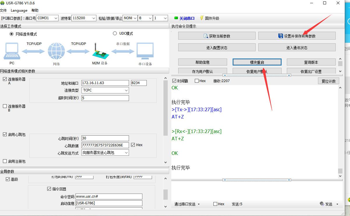 注意:修改的參數都需要重啟后才能生效,所以最后發(fā)送命令密碼AT+Z重啟DTU