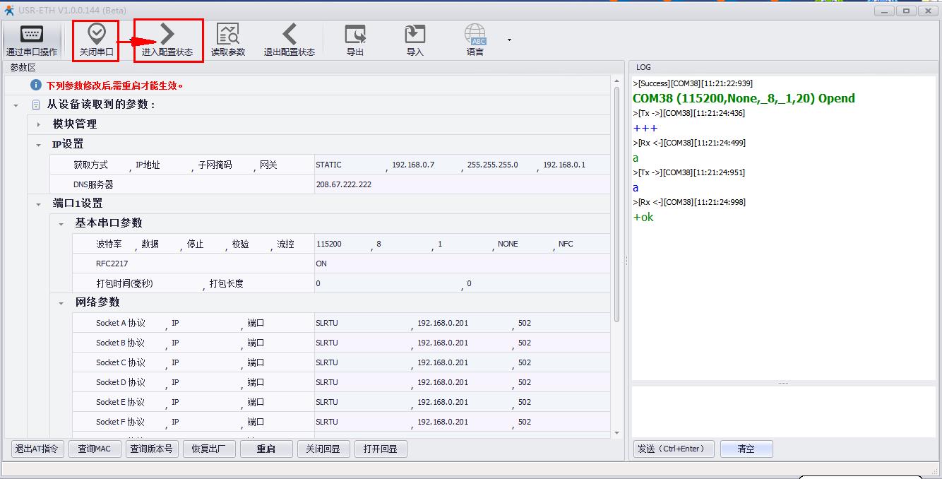 二、靜態(tài)IP時USR-M511做MODBUS RTU從機(jī):