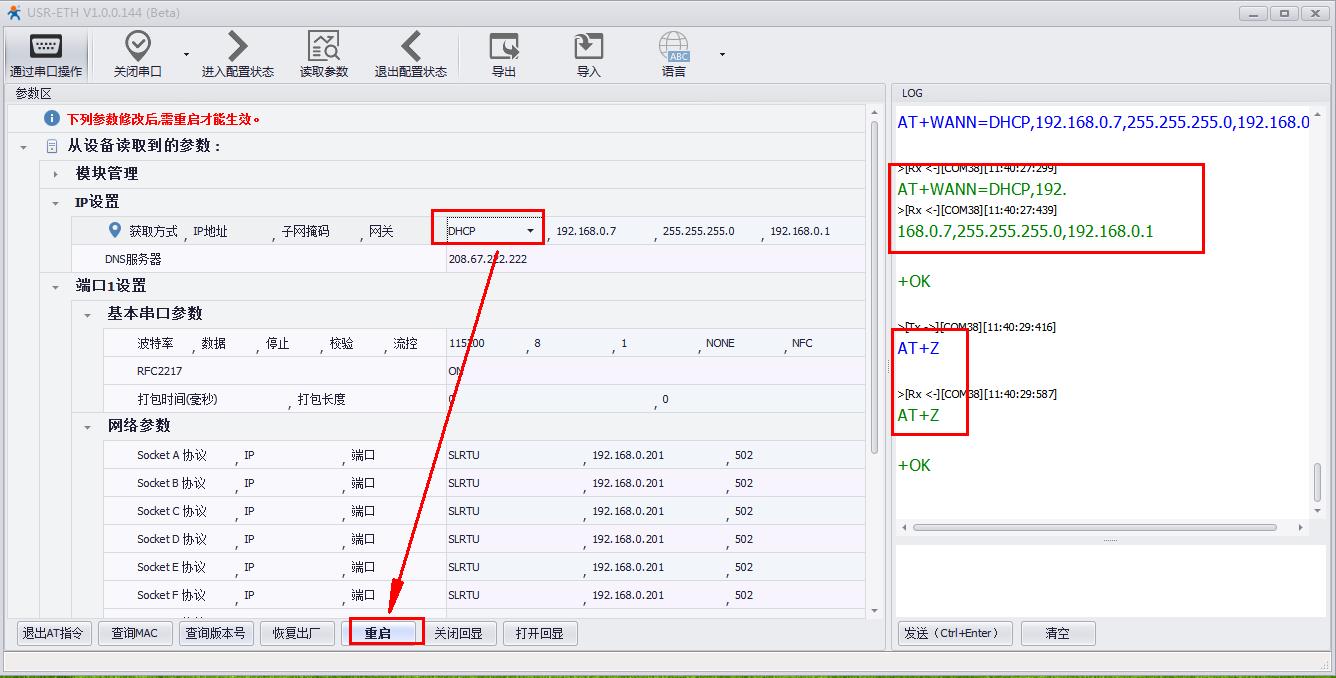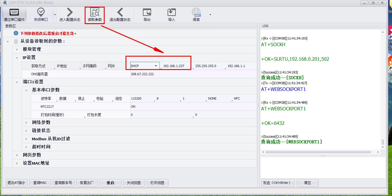 USR-M511網(wǎng)口用網(wǎng)線接路由器,電腦也連接同一個路由器。USR-M511用串口設(shè)置軟件設(shè)置DHCP,動態(tài)獲取IP。