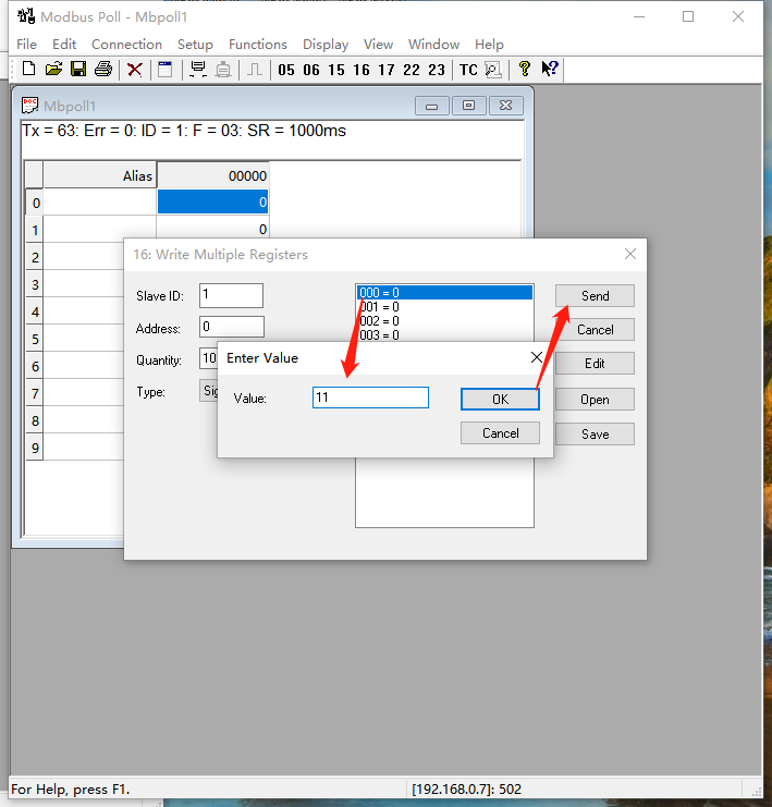 12、在相應(yīng)位置即可給slave(相當(dāng)于自己的終端設(shè)備)對應(yīng)的數(shù)據(jù)點(diǎn)寫數(shù)據(jù)。
