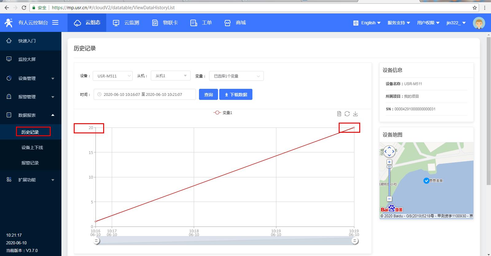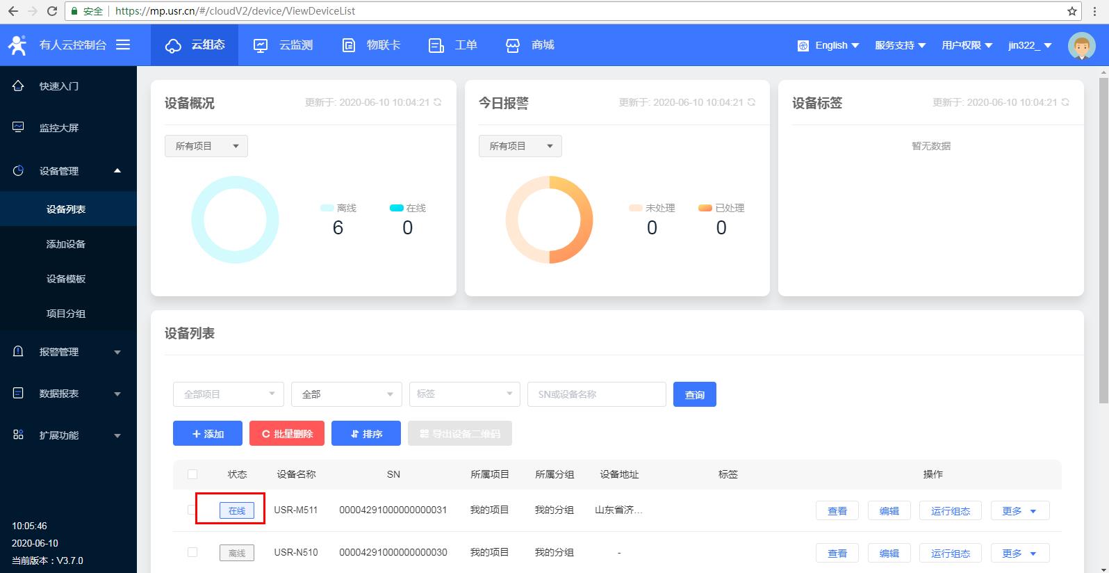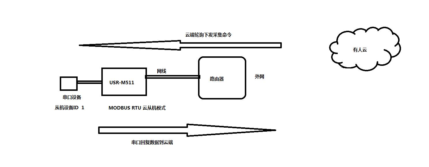 1、USR-M511網(wǎng)線接可以上網(wǎng)的路由器,M511參數(shù)設(shè)置完成,有人云設(shè)備會(huì)提示上線