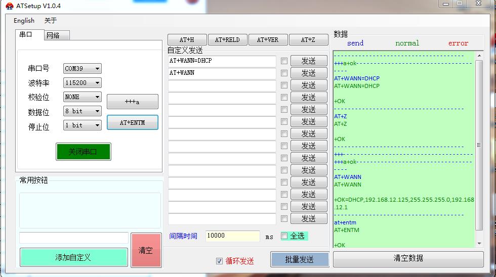 方法一:用USB-RS232串口接M511和電腦,電腦下載串口助手,用串口AT指令A(yù)T+WANN設(shè)置DHCP。