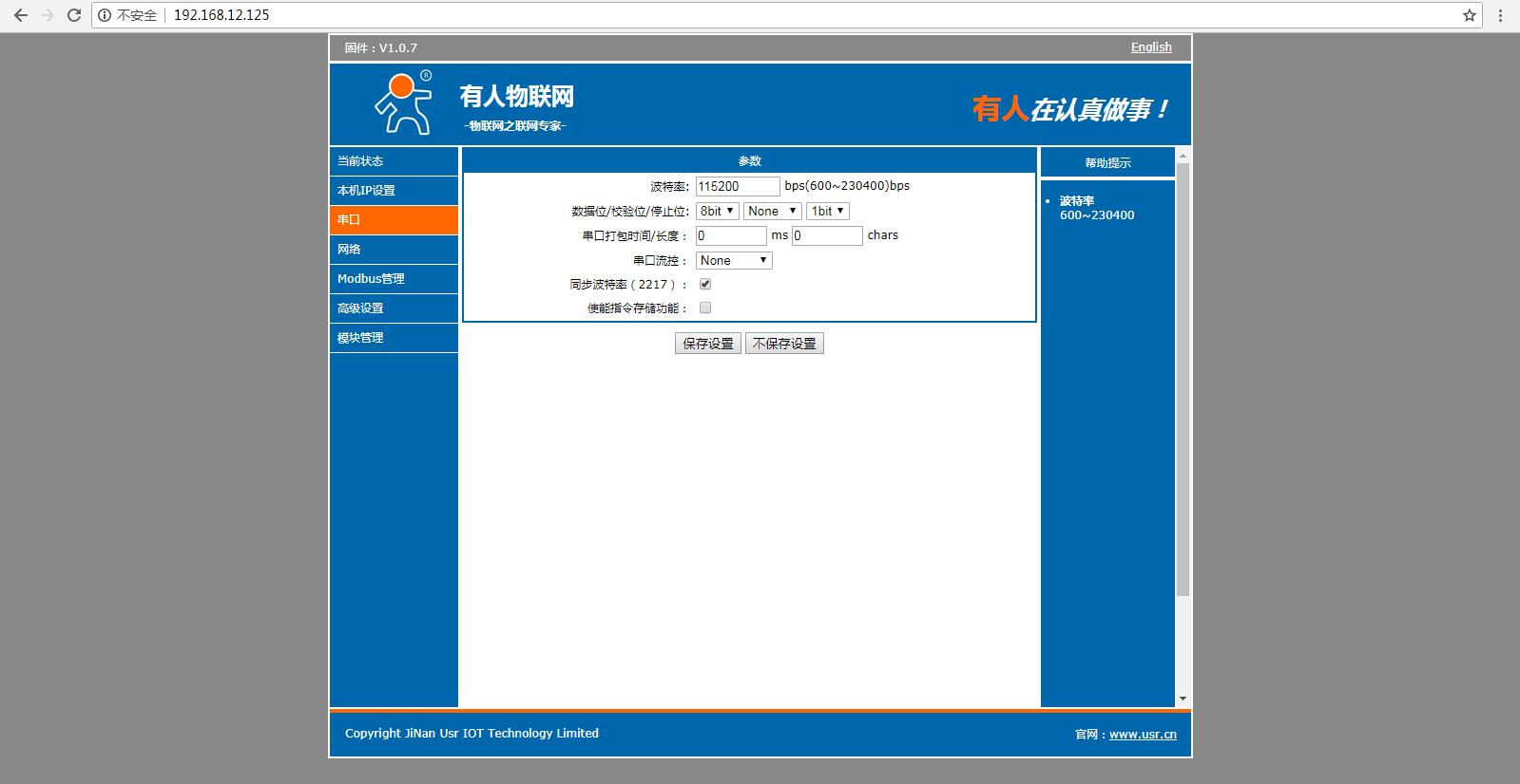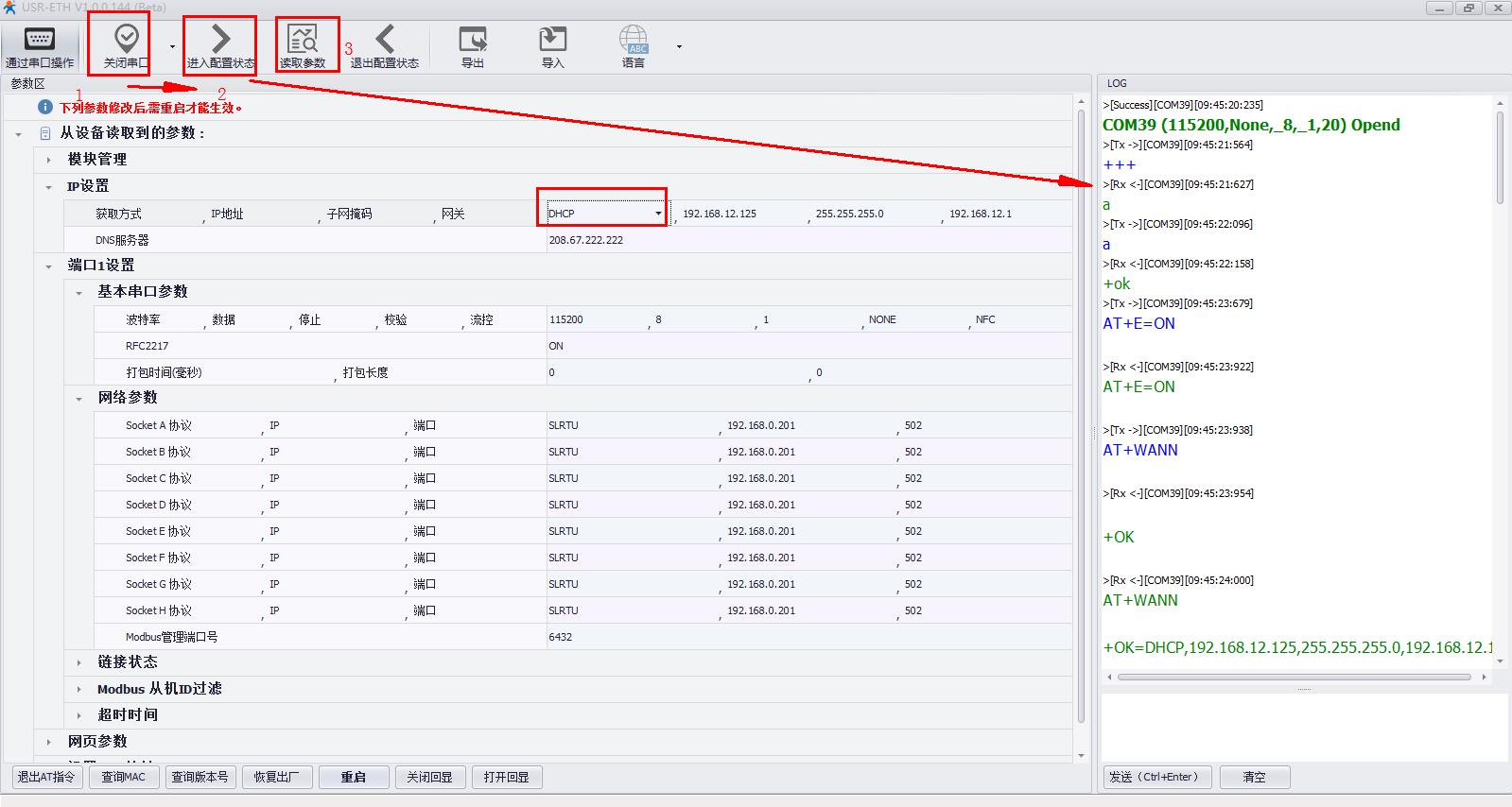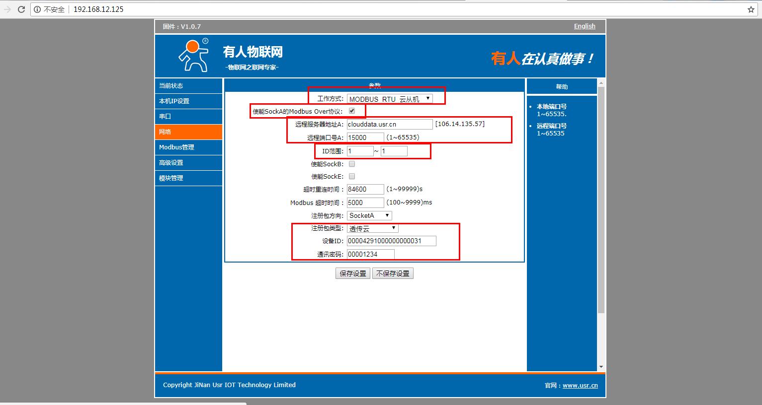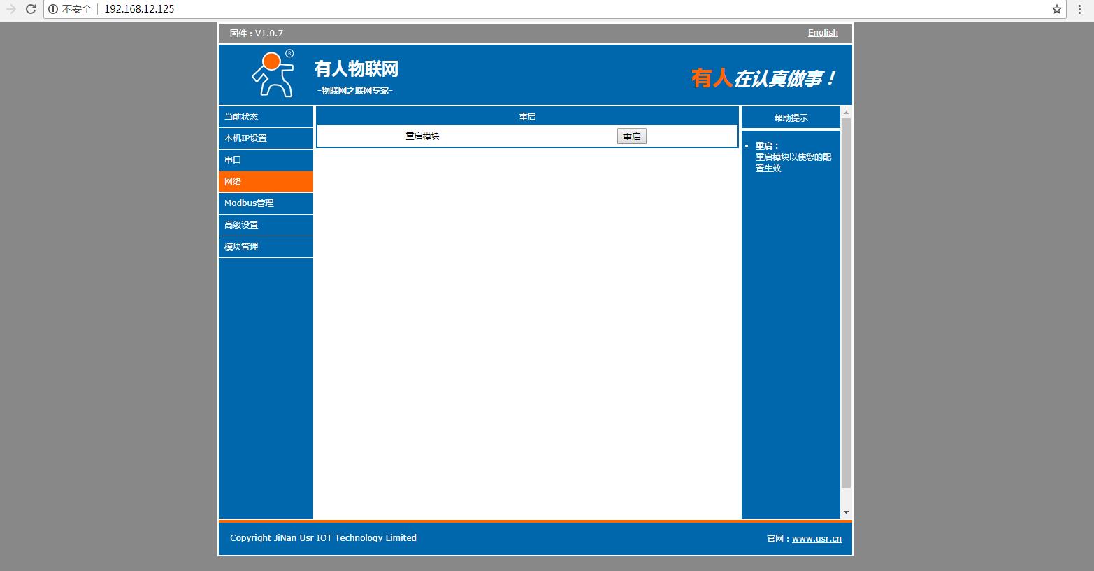 設(shè)置完參數(shù),點(diǎn)擊保存設(shè)置,然后重啟USR-M511