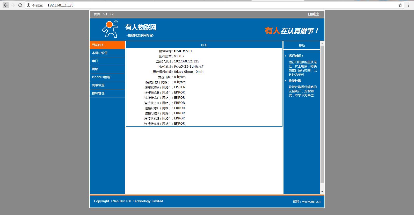 在瀏覽器輸入M511的IP,可以登錄M511的內(nèi)置網(wǎng)頁(yè)。
