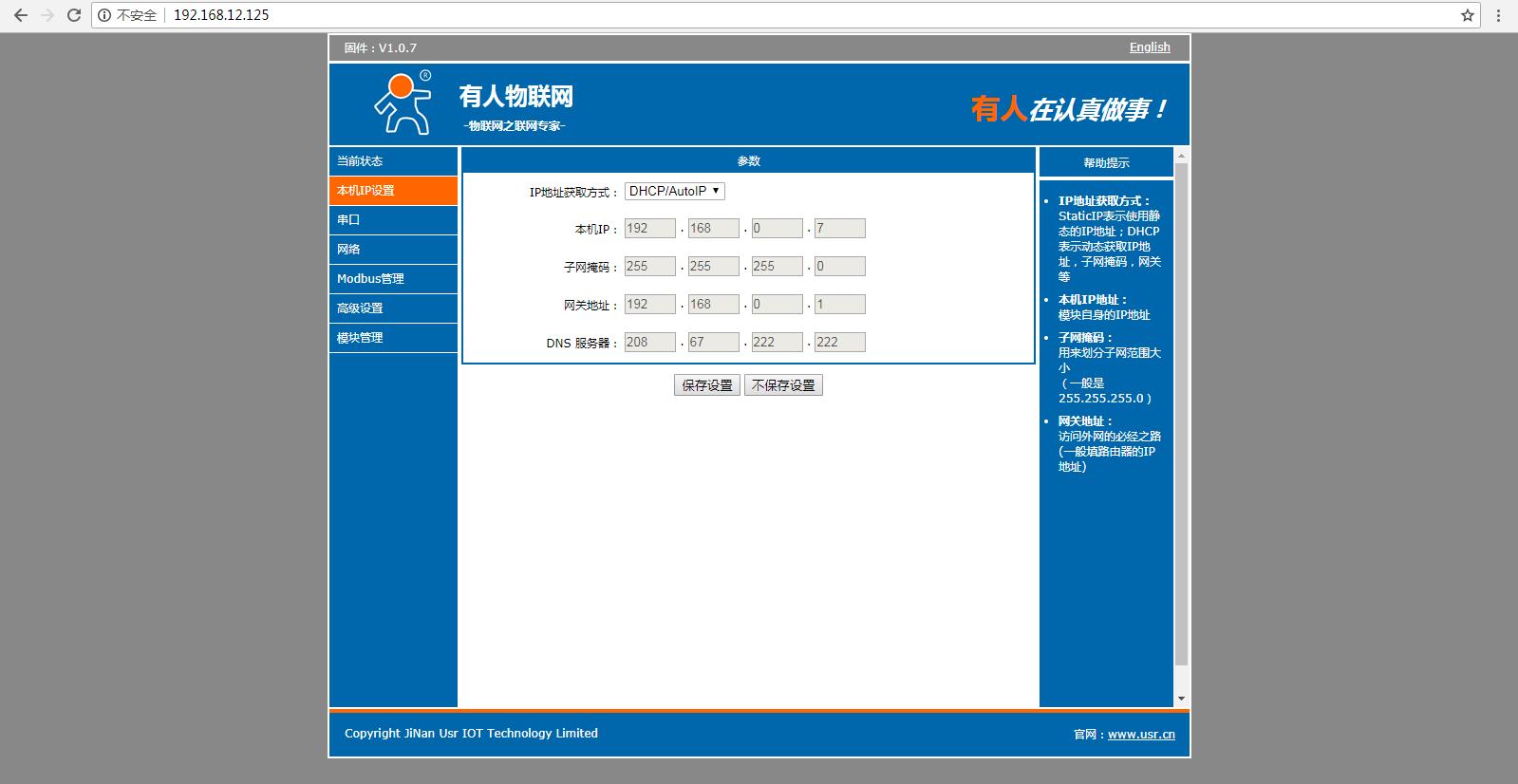 方法二:用M511設(shè)置軟件搜索USR-M511的IP,192.168.0.7,USR-M511用設(shè)置軟件設(shè)置DHCP,動(dòng)態(tài)獲取IP。