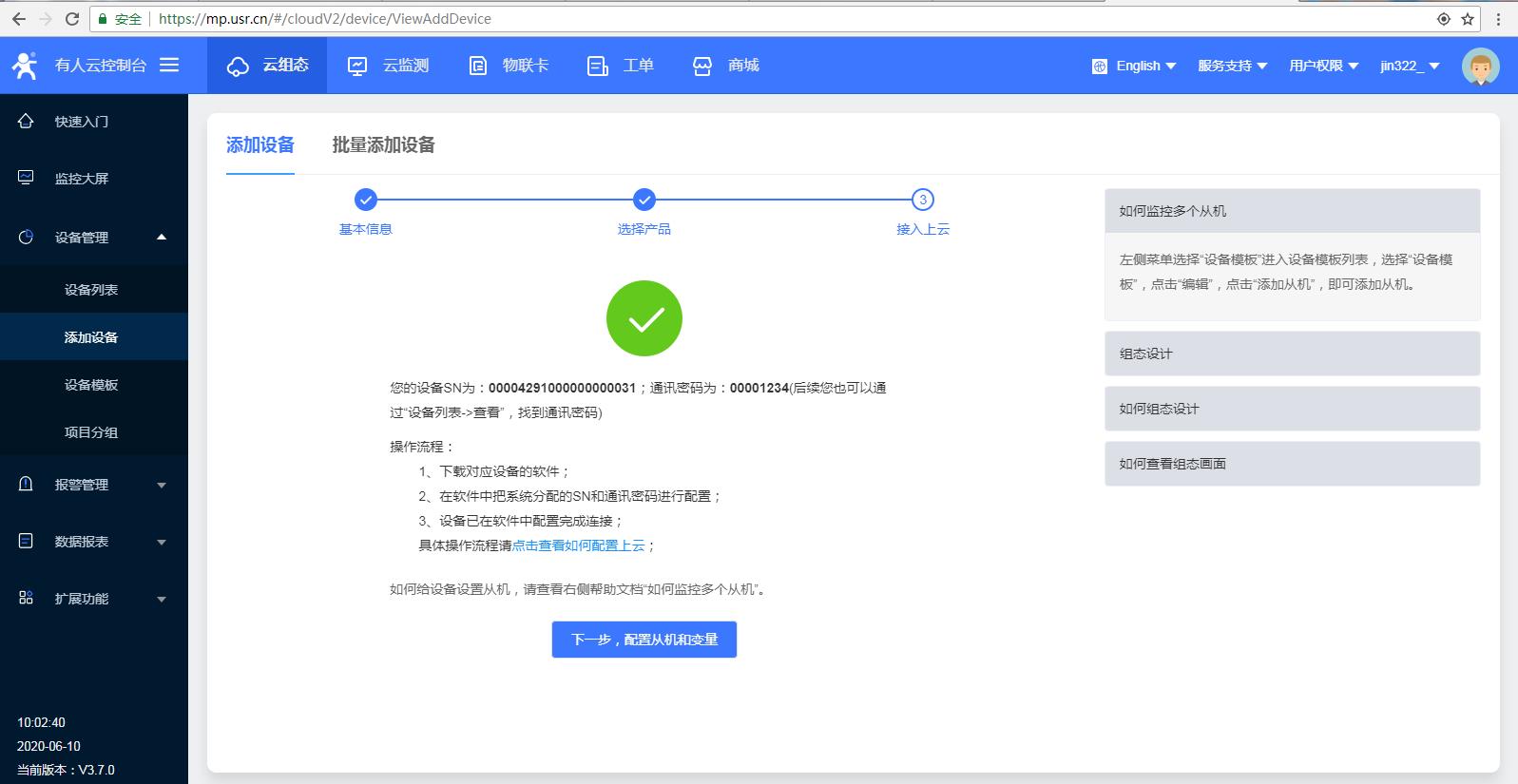 設(shè)備ID,填寫(xiě)有人云添加的USR-M511的設(shè)備ID