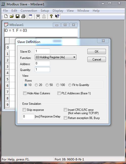 電腦安裝MODBUS SLAVE軟件模擬串口MODBUS RTU設(shè)備。