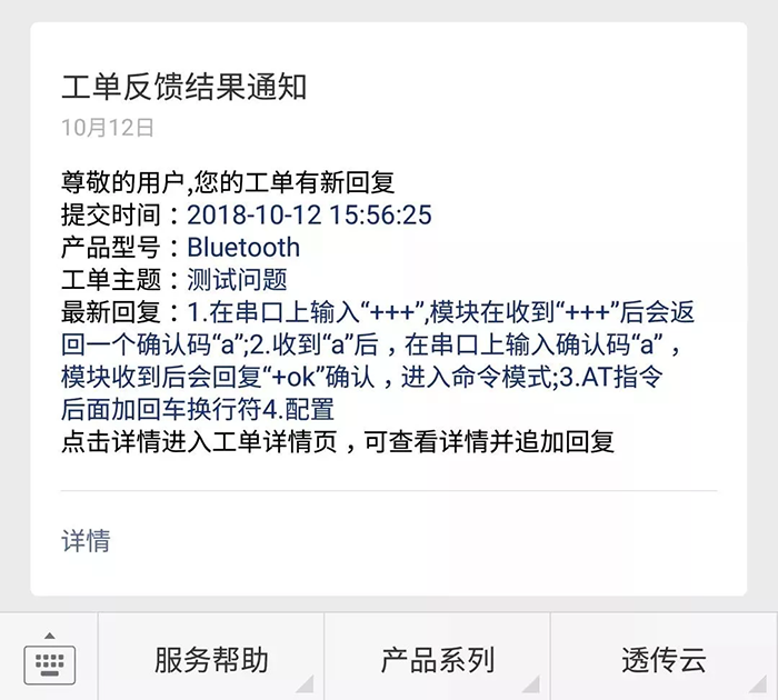 工單反饋結(jié)果通過(guò)微信消息推送給您。