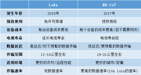 LoRa和NB-IoT標(biāo)準(zhǔn)的主要區(qū)別: