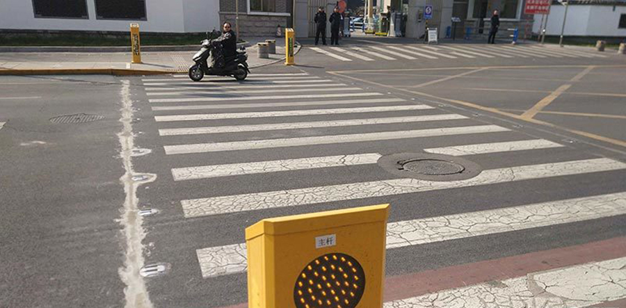 當沒有行人通過馬路時,系統(tǒng)不啟動;當有行人踏上斑馬線時,系統(tǒng)自動啟動。通過這種“聲光結合”的方式引導過往機車輛禮讓行人,確保行人安全過馬路。