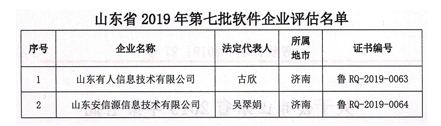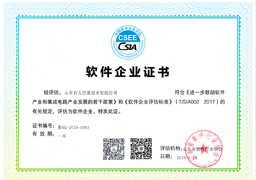 在“山東省2019年第七批軟件企業(yè)”評(píng)估中,有人物聯(lián)網(wǎng)被山東省軟件行業(yè)協(xié)會(huì)認(rèn)證為軟件企業(yè)。聯(lián)想到之前已經(jīng)獲得的軟件產(chǎn)品認(rèn)證,這也意味著,有人正式成為“雙軟企業(yè)”。